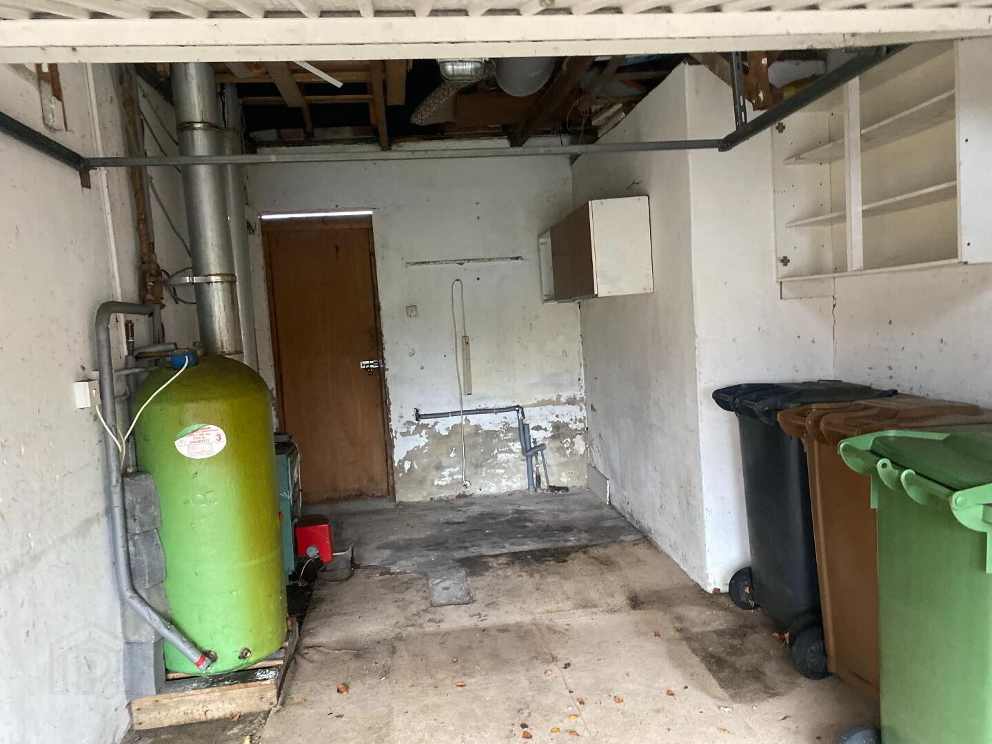 4.83m x 3.48m (15' 10" x 11' 5") Up & over door, boiler housing, water tank, cooking facilities, plumbed for washing machine, range of wall units, wood panel door to rear.