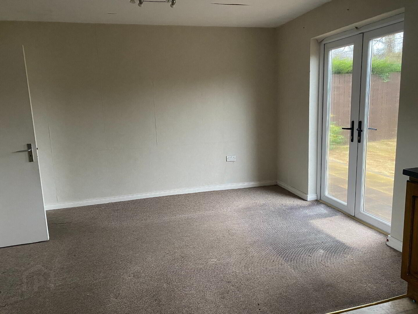 5.61m x 3.81m (18' 5" x 12' 6") Solid wooden kitchen with facilities for a Range style cooker, space for washing machine, 1.5 stainless steel sink & mixer tap, half vinyl, half carpet flooring, double patio doors to rear.