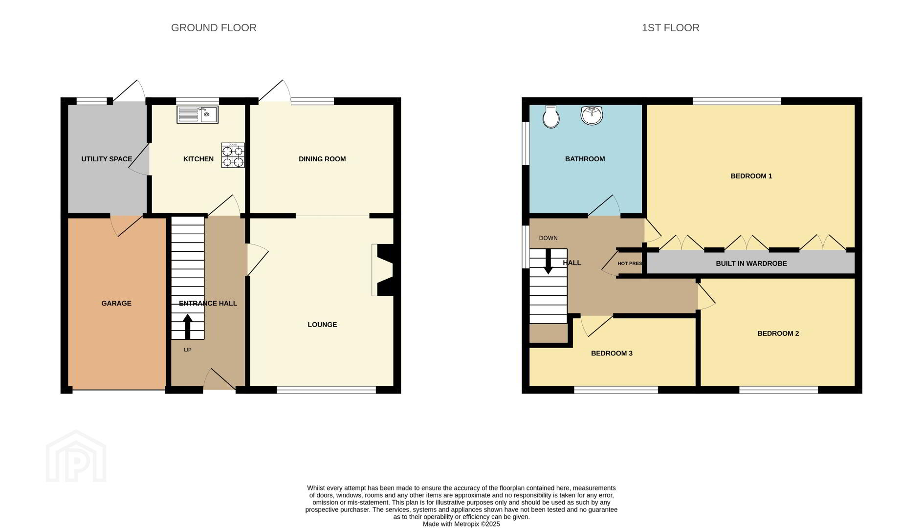 Plumbed for washing machine and tumble dryer, space for American style fridge freezer, boiler storage, door to integrated garage and door to rear.