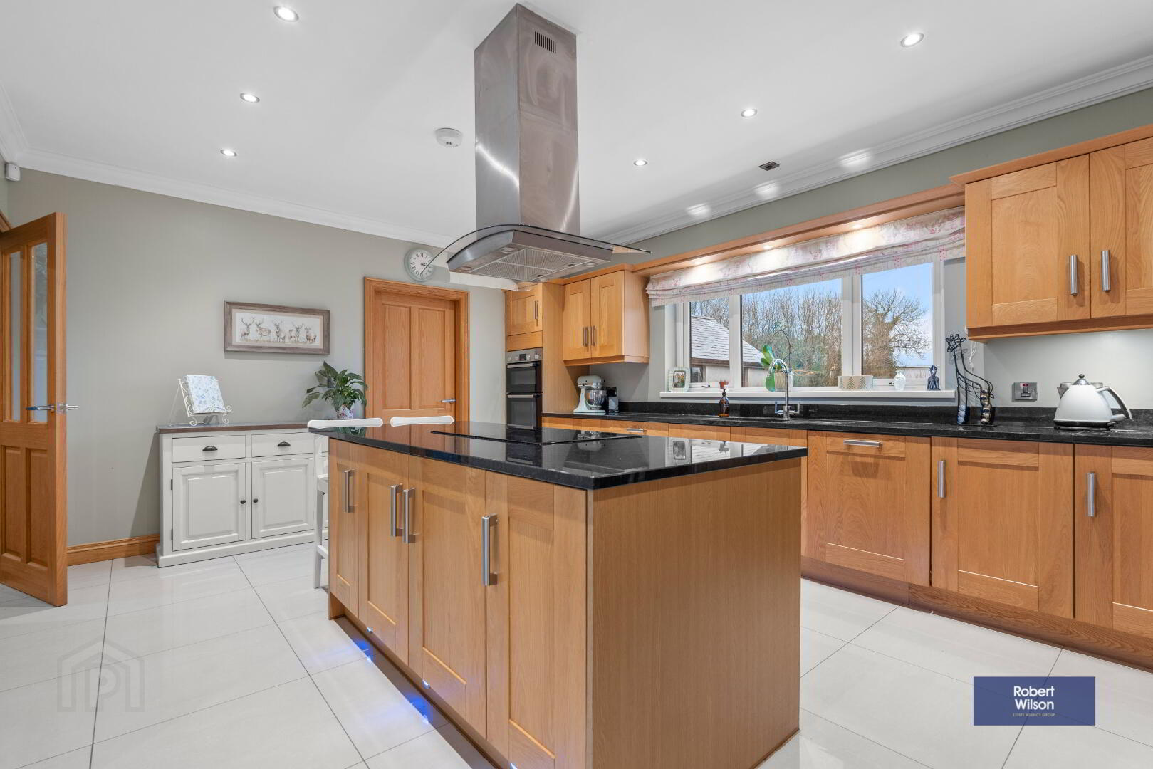 4.05m x 5.36m (13' 3" x 17' 7") Excellent range of of high and low level solid oak kitchen with granite worktop and upstand. Inset sink unit, integrated dishwasher, space and plumbed for American fridge freezer, double eye level oven, island with storage, 5 ring induction hob with extractor fan over. Recessed lighting and tiled floor.