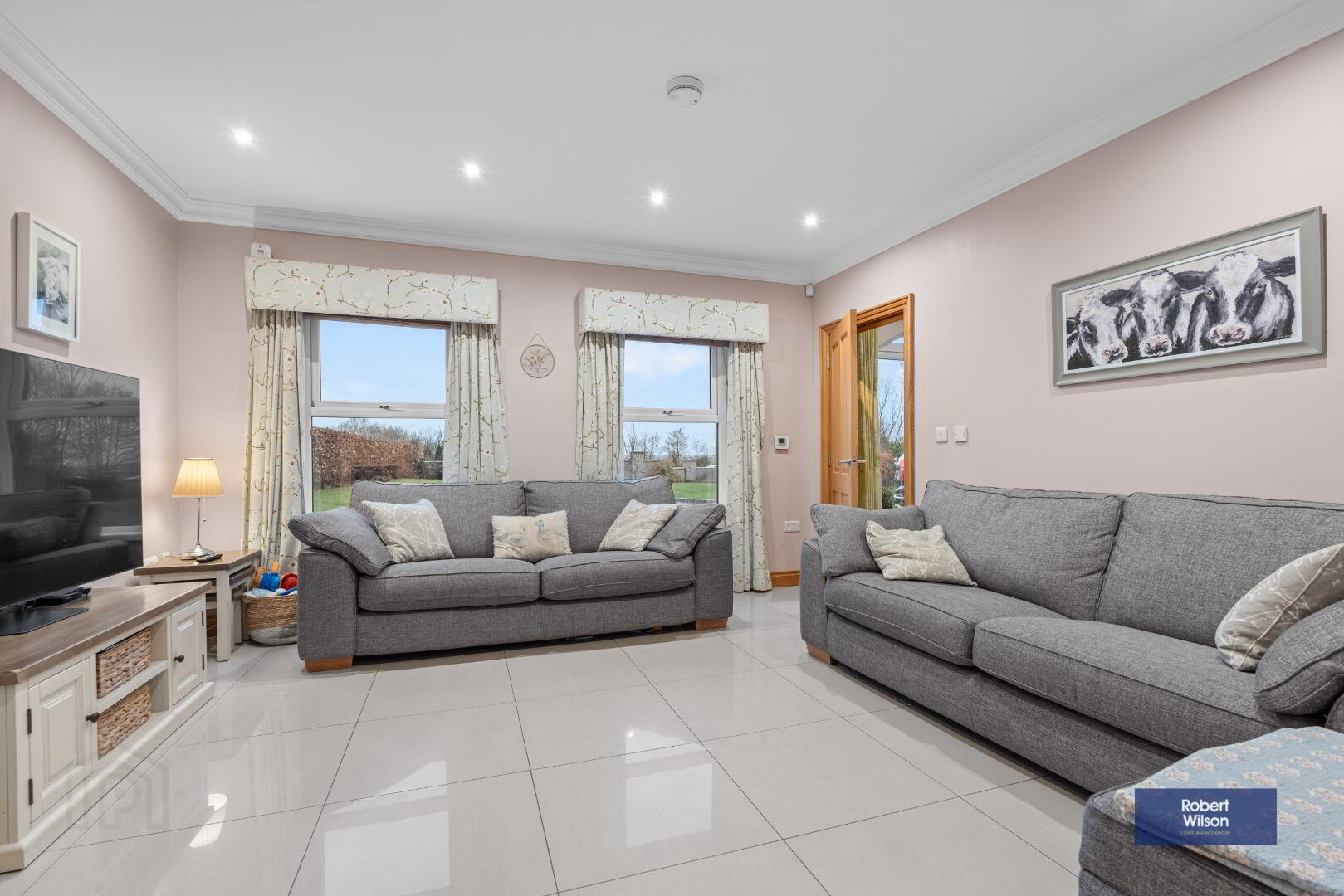 105a Dromore Road, Donaghcloney is a beautifully presented detached country residence offering generous, flexible accommodation finished to an exceptional standard throughout. Positioned on a spacious site, this impressive home combines refined detailing with modern family living, all while enjoying a convenient location close to Moira, Magheralin, Dromore and Donaghcloney.