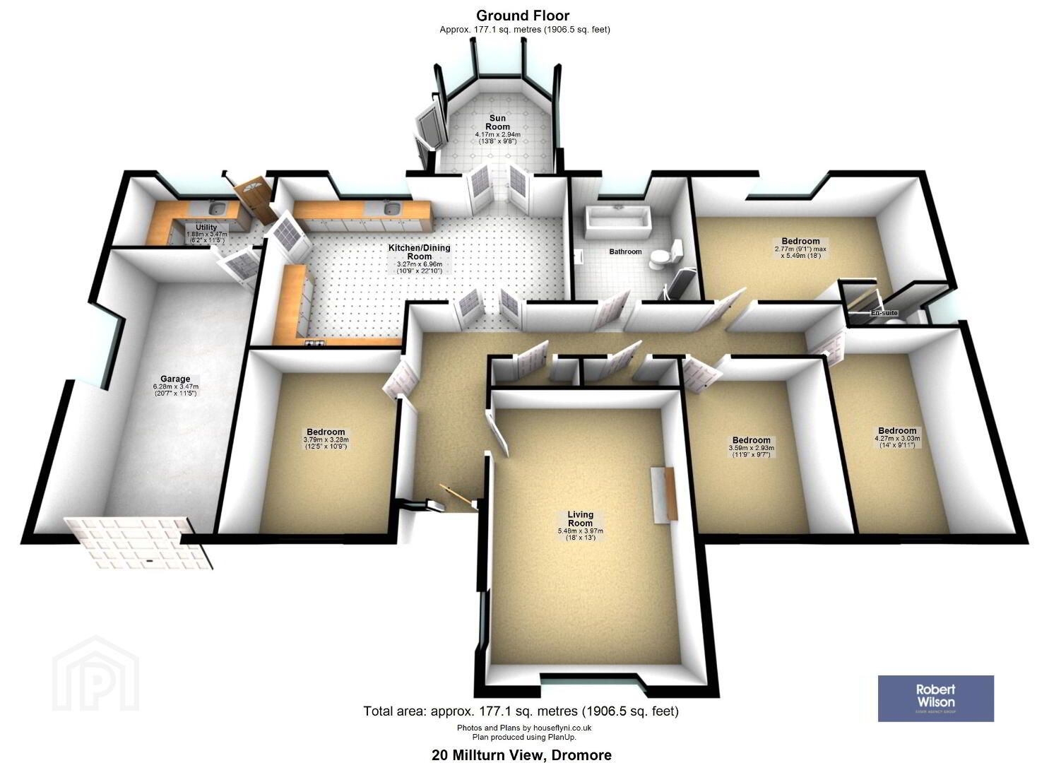 • Accomodation comprises; Entrance Hall, Lounge, Kitchen, Dining, Sunroom, Utility Room, 4 Bedrooms ( Main with En-suite) and Bathroom