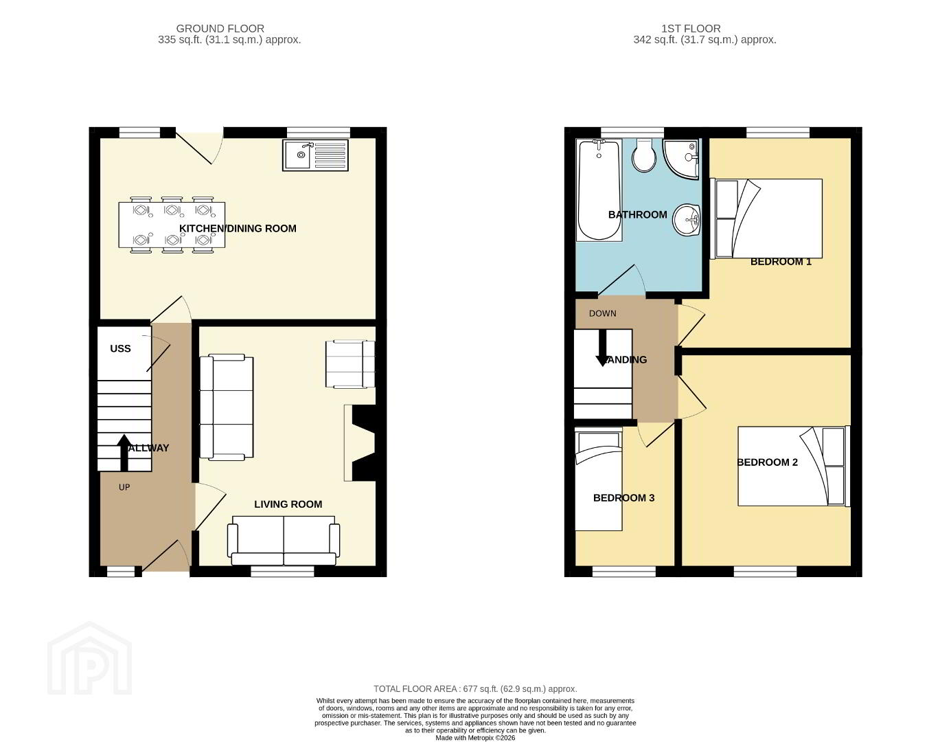 Upstairs, the property offers three generously sized double bedrooms and four-piece family bathroom.