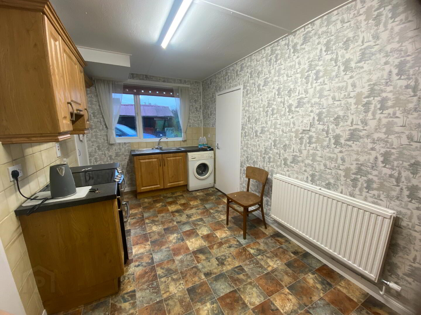 4.89m x 2.47m (16' 1" x 8' 1") Range of high & low level units, space for cooker with extractor fan over. Space for washing machine & fridge freezer, stainless steel sink unit, mixer tap, walk-in larder, double panel radiator, part tiled walls vinyl flooring.