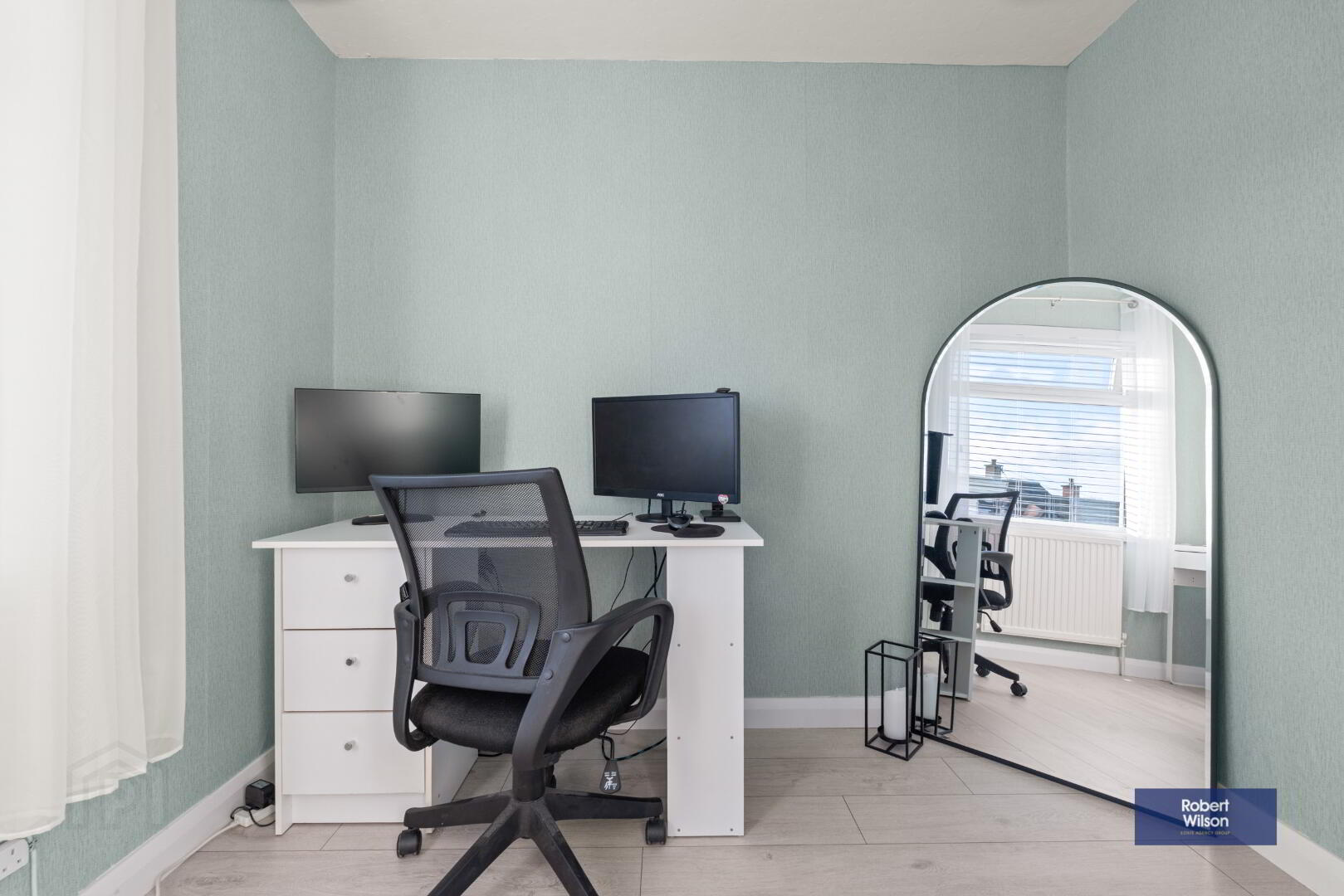 On the first floor there are three bedrooms, including two generous doubles and a third bedroom/home office, all benefiting from built-in storage. The accommodation is completed by a stylish, shower room with modern white suite, walk-in shower with rainfall and handheld fittings, PVC wall panels and chrome heated towel rail.