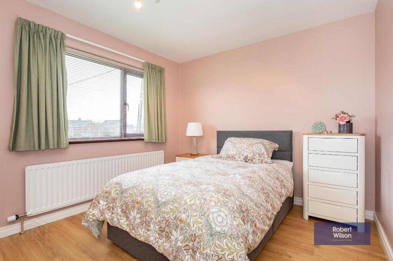 Discover 4 Ballycairn Road, Aghalee, where beautiful gardens and immaculate interiors await. Step inside to be greeted by a welcoming entrance hall featuring a PVC triple glazed front door and tiled flooring. The ground floor boasts a spacious lounge adorned with a triple glazed feature bay window, wood effect laminate flooring, and a cozy fireplace. The kitchen is equipped with a good range of high and low level units, solid maple shaker style doors, and integrated appliances. French doors lead from the living room to the garden, perfect for enjoying the outdoors.