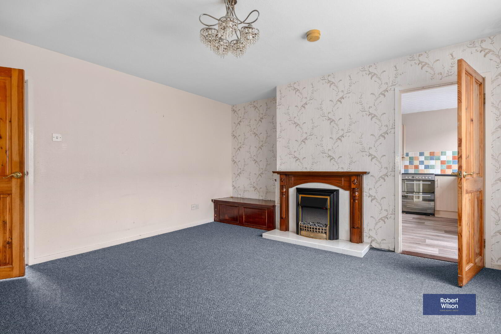 The accommodation comprises a welcoming entrance hall leading to a bright living room with feature fireplace, creating a cosy focal point. The kitchen provides ample dining space and is further enhanced by a generous storage area and a separate storeroom, which offers excellent potential for conversion to a utility space.