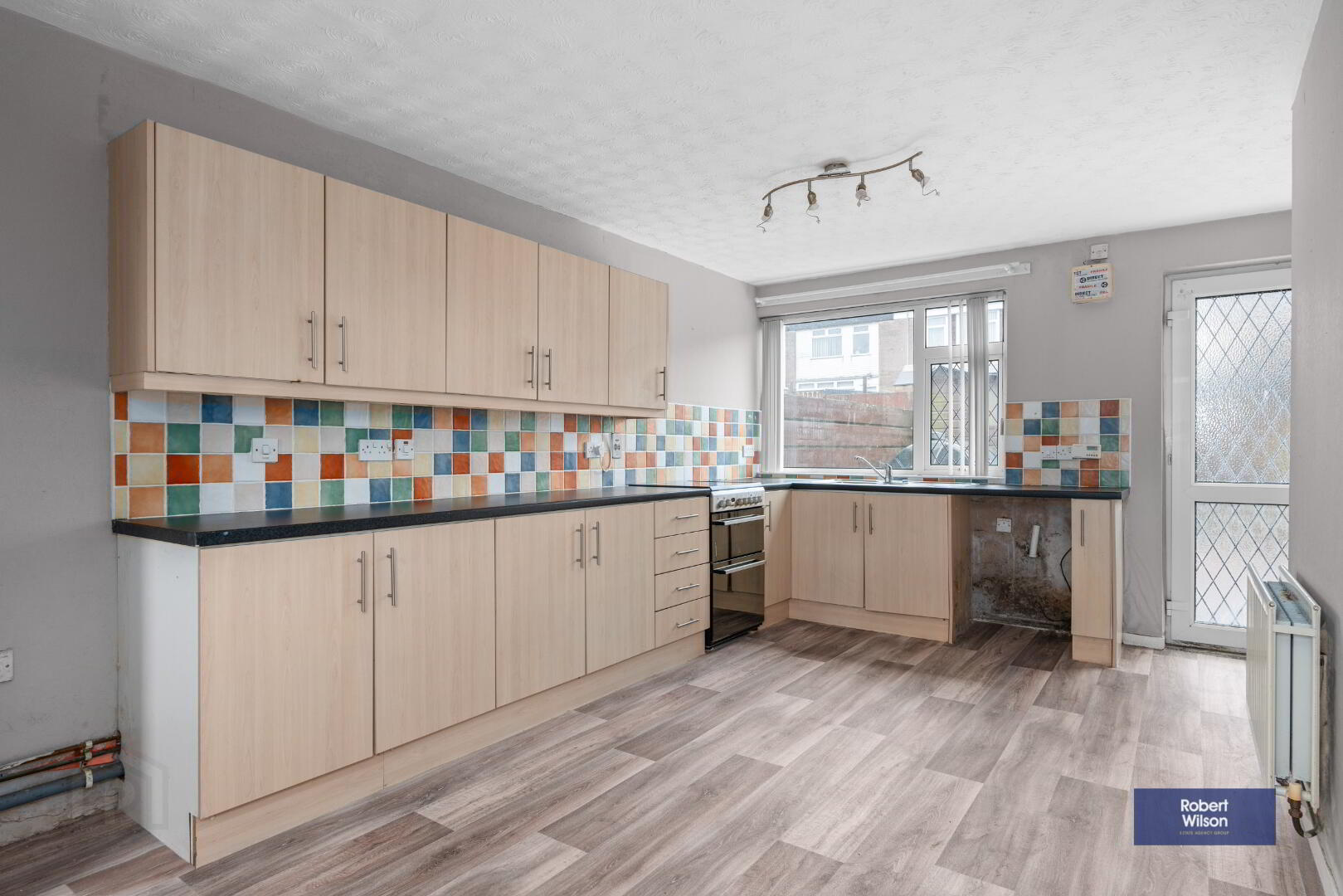 5.61m x 3.42m (18' 5" x 11' 3" Furthest points) Range of high & low level units, 1.5 stainless steel sink unit with mixer tap, space for cooker & fridge freezer, double panel radiator, vinyl flooring, extractor fan, part tiled walls, storage cupboard with electric housing.
