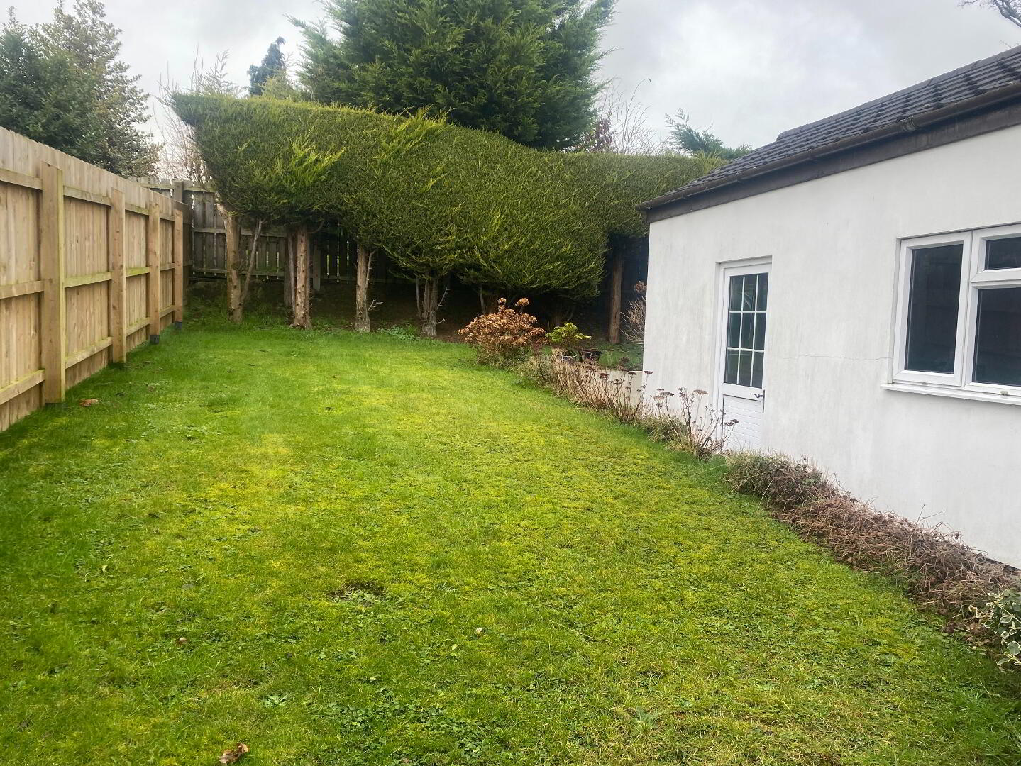 The front garden is laid in lawn, while the rear garden offers a paved patio area, a raised lawn, boundary fencing, and mature trees, providing a pleasant and private outdoor space. The property further benefits from oil-fired central heating and uPVC double glazing throughout.