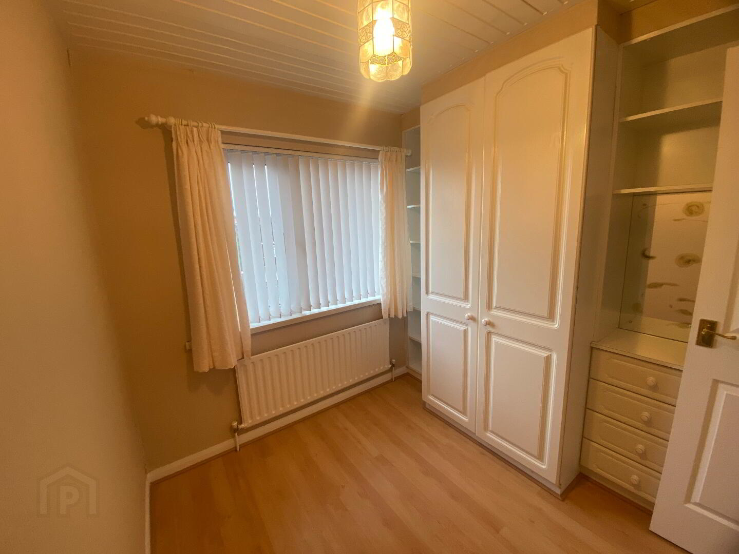 Carpet flooring, single panel radiator.