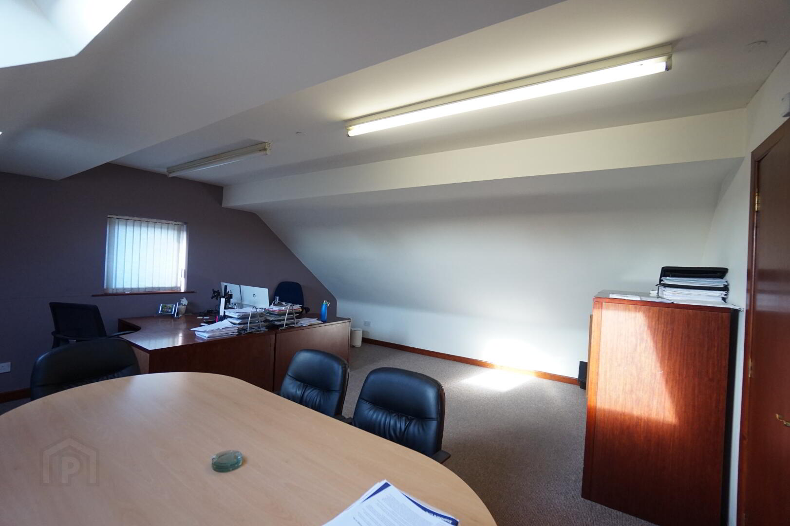 Located in a prime, easy-to-find spot on Moira’s Main Street, this property offers a professional and versatile workspace spread across two floors. The first floor features a spacious main office area and WC. Upstairs, there’s a bright boardroom or additional office space, with a convenient kitchenette located on the landing.