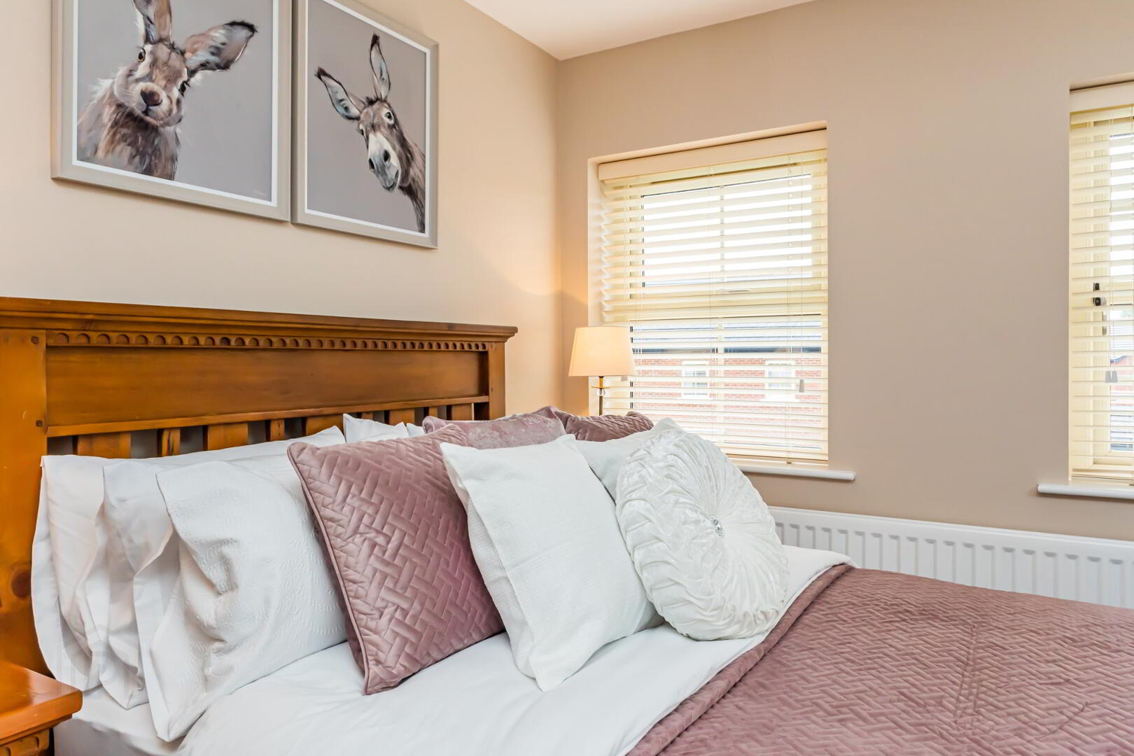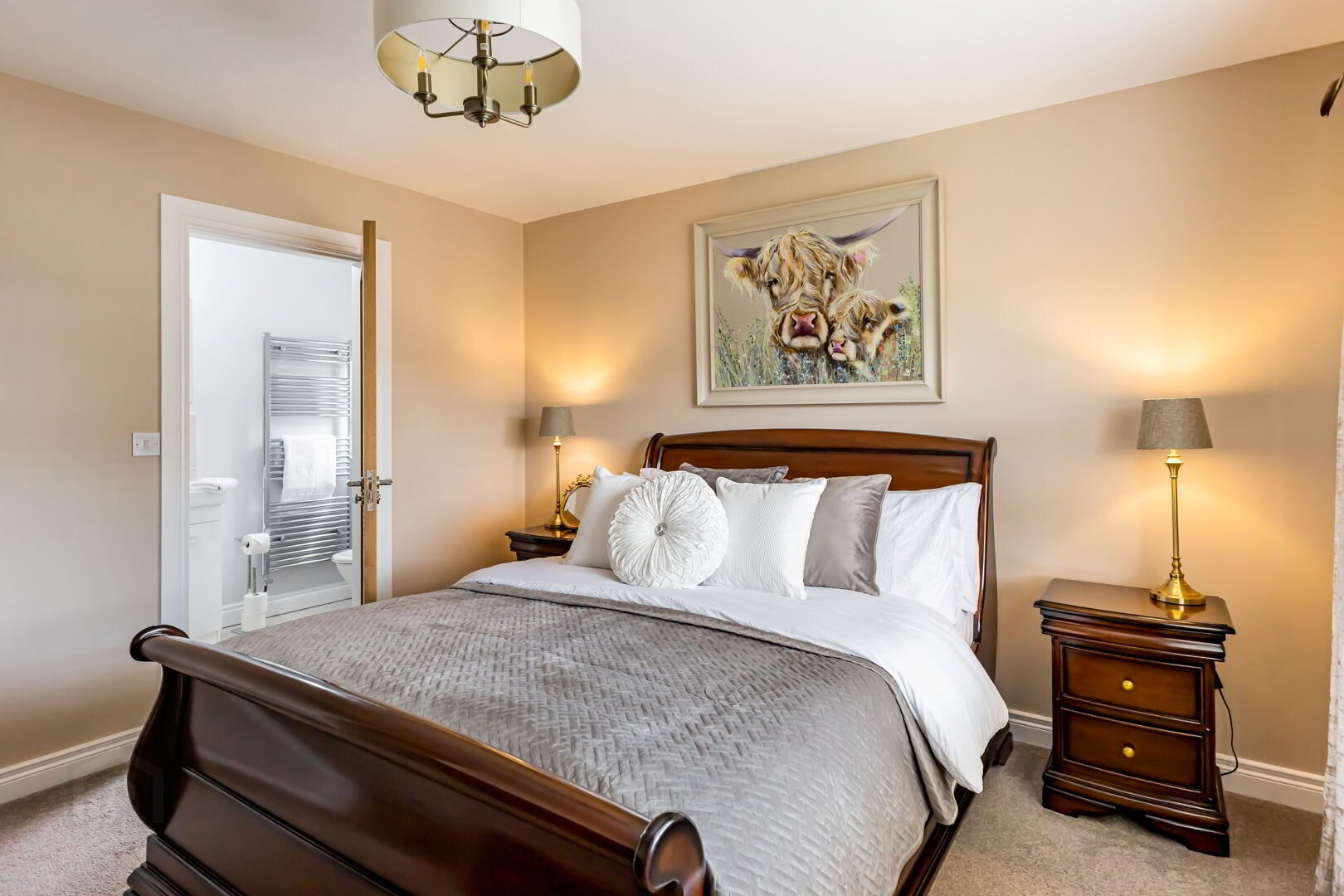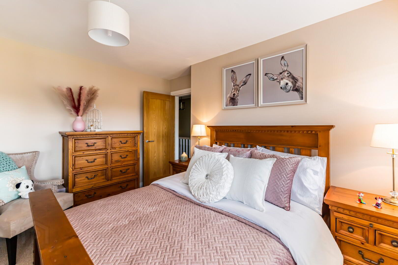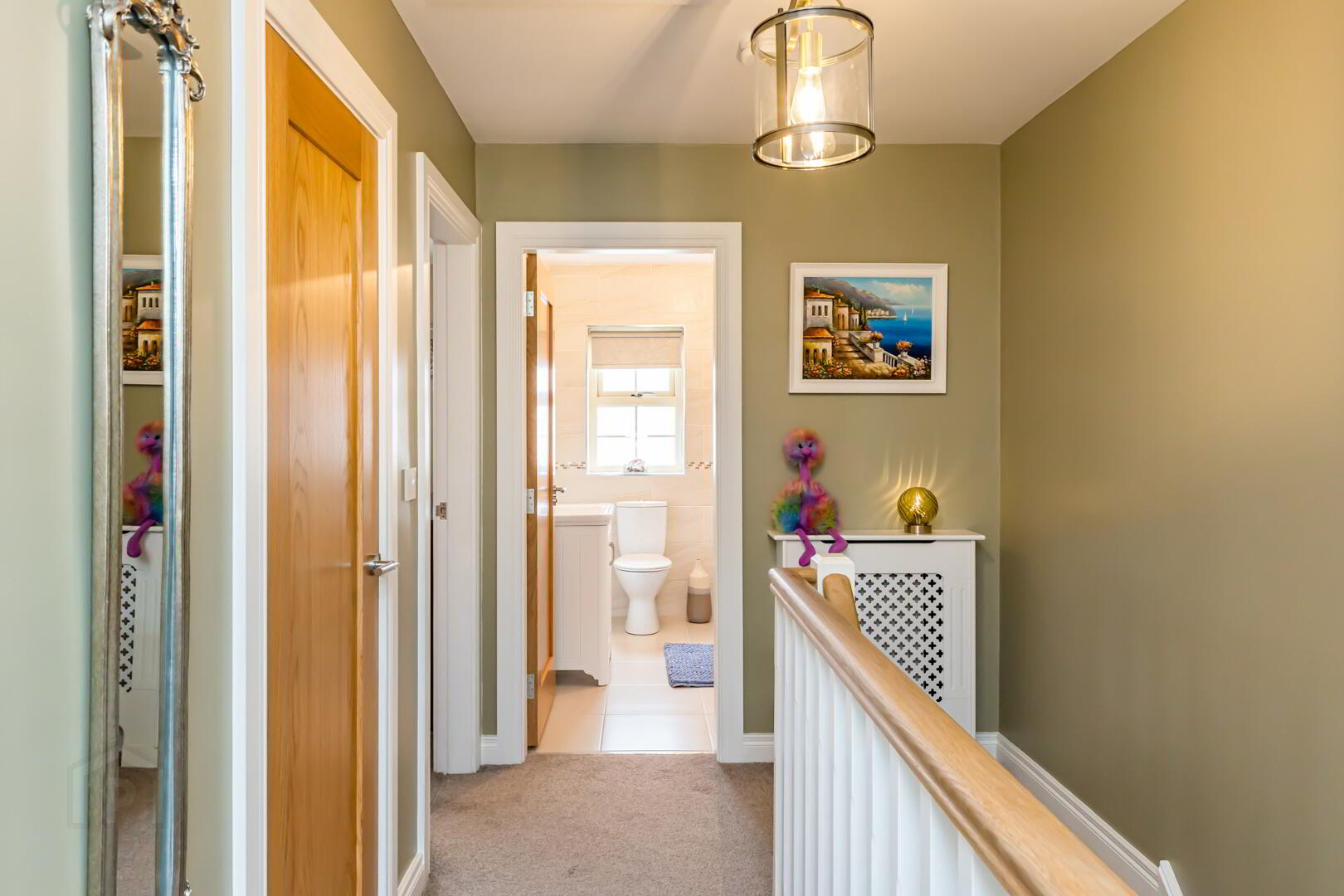 Upstairs, the main bedroom benefits from a modern en-suite shower room, while the second bedroom includes stylish built-in slide robes. A third bedroom and contemporary family bathroom with walk-in shower complete the first floor.
