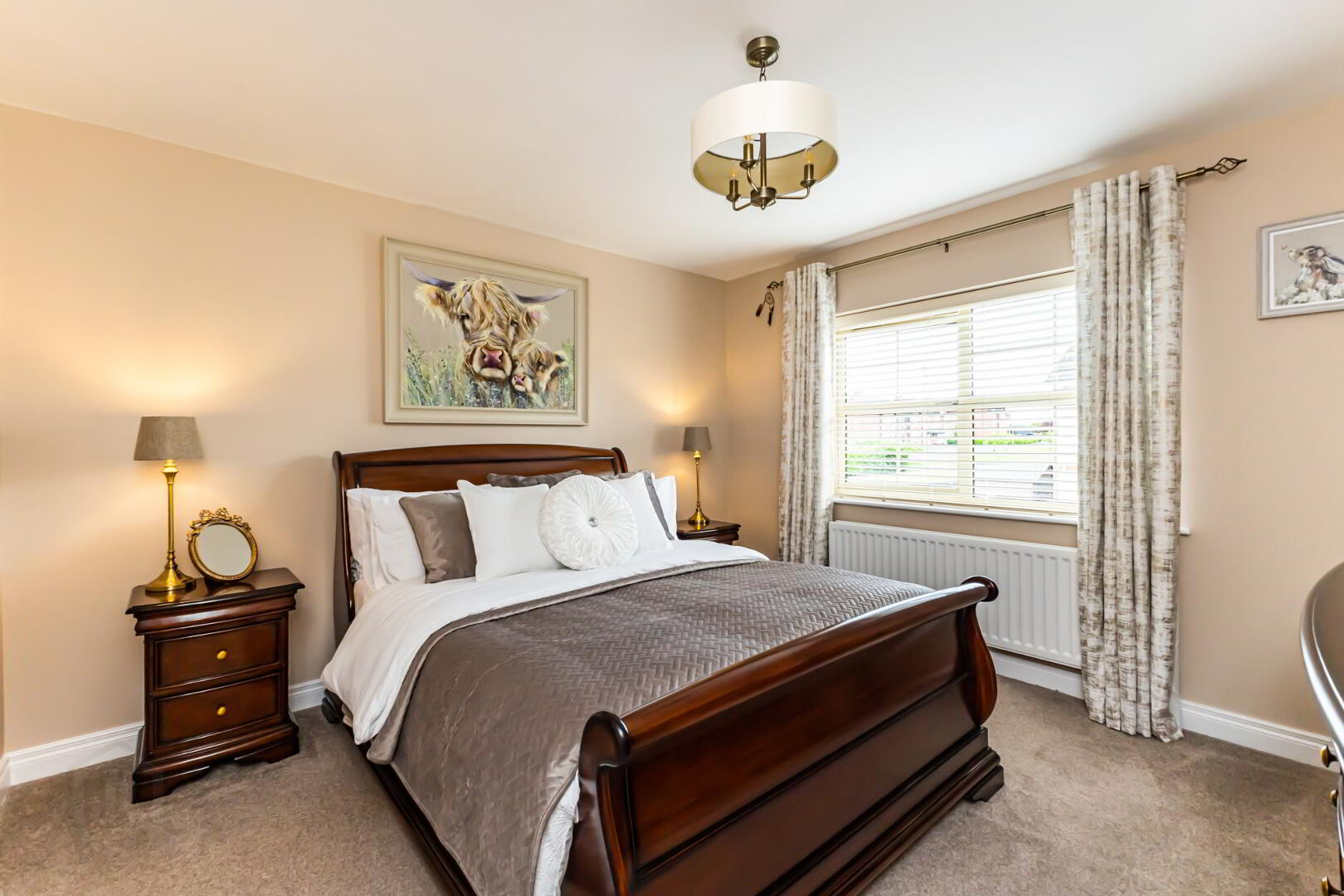 3.66m x 5.25m (12' 0" x 17' 3") Feature granite fireplace, stone inset with multi fuel stove, cornice and ceiling rose, porcelain wood effect floor tiles and double panel radiator.