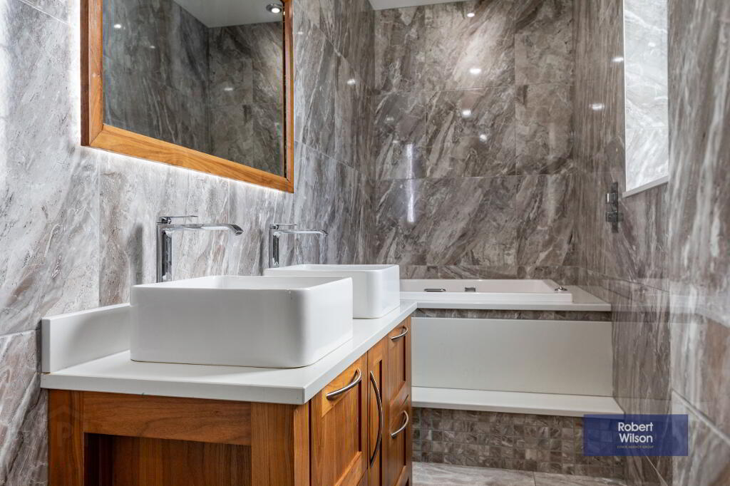 Extra deep jacuzzi bath, Large walk in shower enclosure, Fully tiled walls, Tiled floor, Low voltage down-lights.
