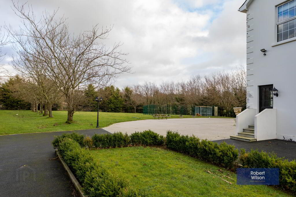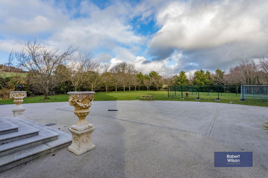 Impressive double wing walls and electric gates. Sweeping driveway to side car parking and front forecourt in newly laid resin. Spacious gardens all around in lawn, mature tree lined site offering optimum privacy. Grounds total approximately circa.1.2 acre.