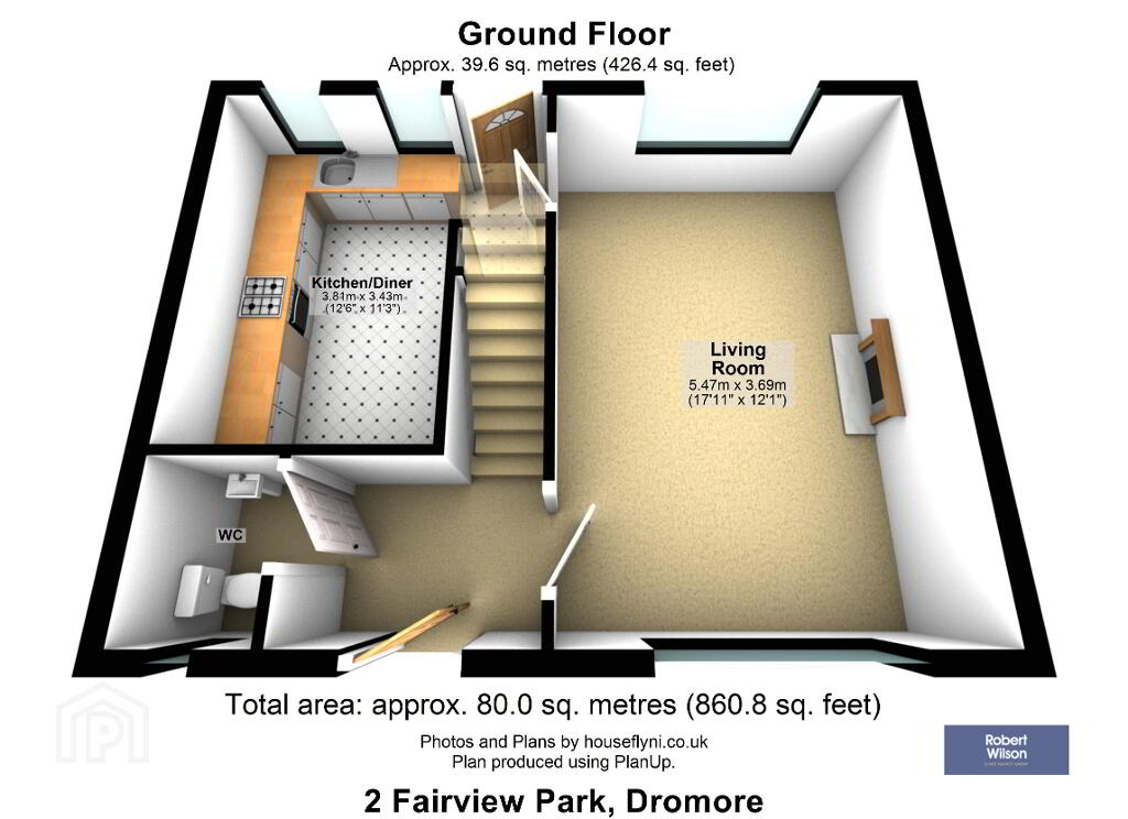 2.2m x 1.7m (7' 3" x 5' 7") Tiled flooring, stairs to first floor