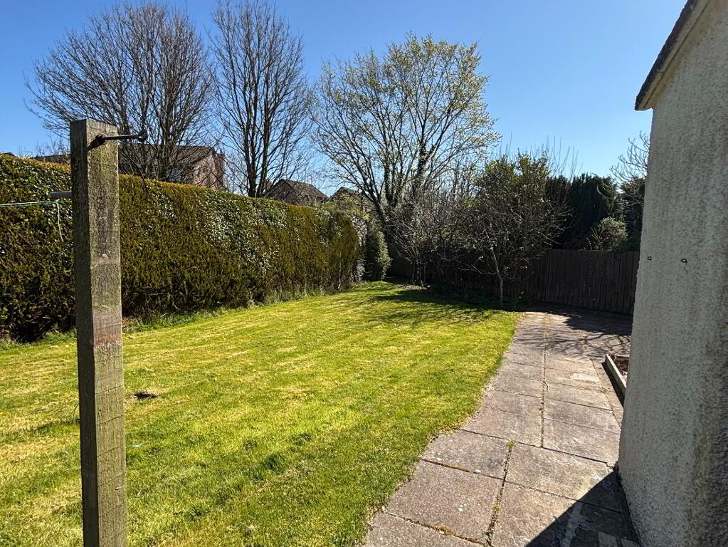 Large rear garden in lawn with paving. Various plants, trees and shrubs. Access to communal green area.
