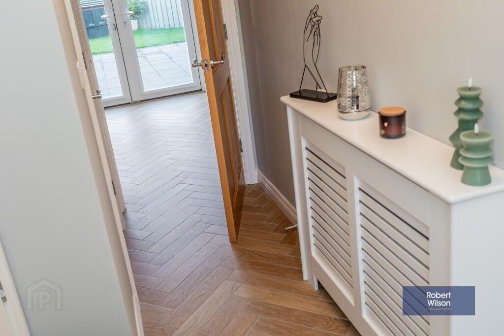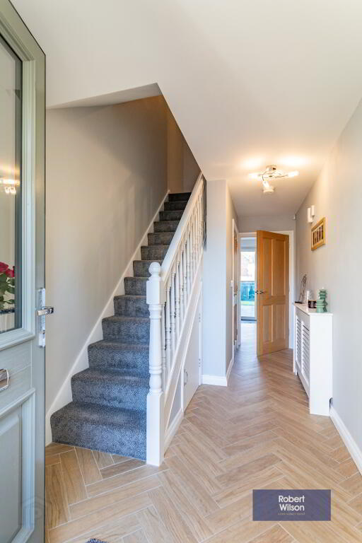2.1m x 4.85m (6' 11" x 15' 11") Composite front door. Wood effect herringbone tiled floor. Alarm panel. Under stair storage, stair case to first floor.