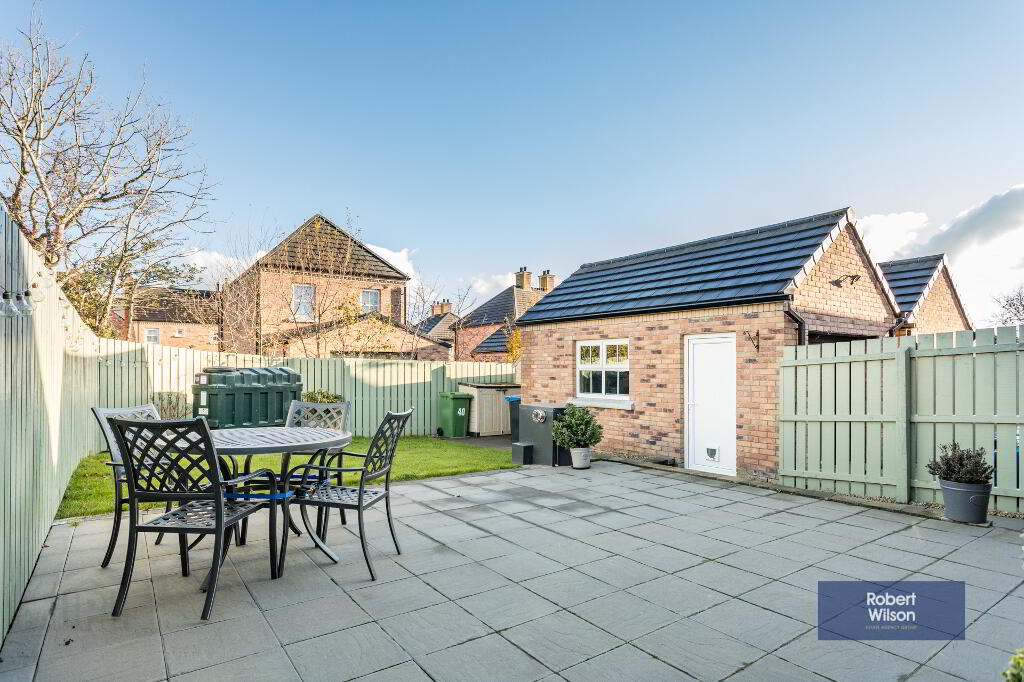 Rear garden in paving slabs. Walk way to service area behind garage. Fully enclosed 6ft fencing. Walkway surrounding property. Brick paving driveway. Oil fired combi boiler. Garden in lawn to front.