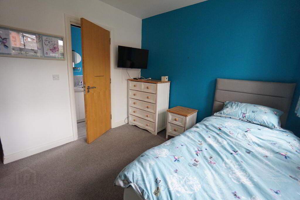 Nestled in a quiet cul-de-sac, 3 Burnbrae Mews offers a blend of modern comfort and convenience. As you enter through the hardwood front door, you're greeted by an inviting entrance hall with two storage cupboards, one housing a water cylinder and shelving. The open-plan lounge, kitchen, and dining area feature a range of high and low-level units, complemented by laminate worktops and integrated appliances. French doors lead to a rear patio, perfect for indoor-outdoor living. The property boasts two well-appointed bedrooms, including a newly installed en-suite in the master bedroom with a walk-in shower. A spacious recently updated wet room provides additional comfort. Outside, the front is paved with parking available to the side, while the rear garden offers a tranquil retreat with lawn, patio, and various plants. Conveniently located near the M1 motorway, this home combines serenity with easy access to amenities
