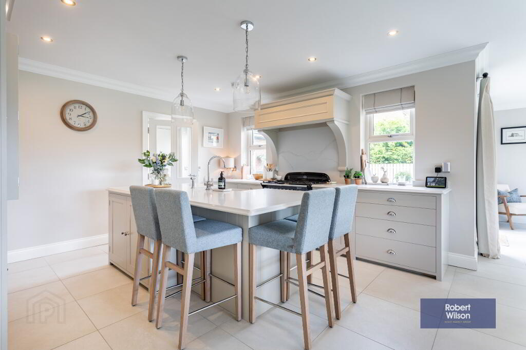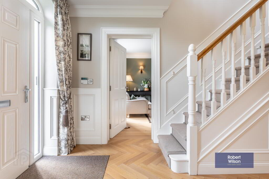 Tucked away in a peaceful cul-de-sac and just a short stroll from the heart of Hillsborough village, 8 Belgravia Court offers the perfect blend of elegance, comfort, and practicality. This immaculately presented four-bedroom detached home showcases a high standard of finish throughout, with bespoke interiors and generous living spaces ideal for modern family life.