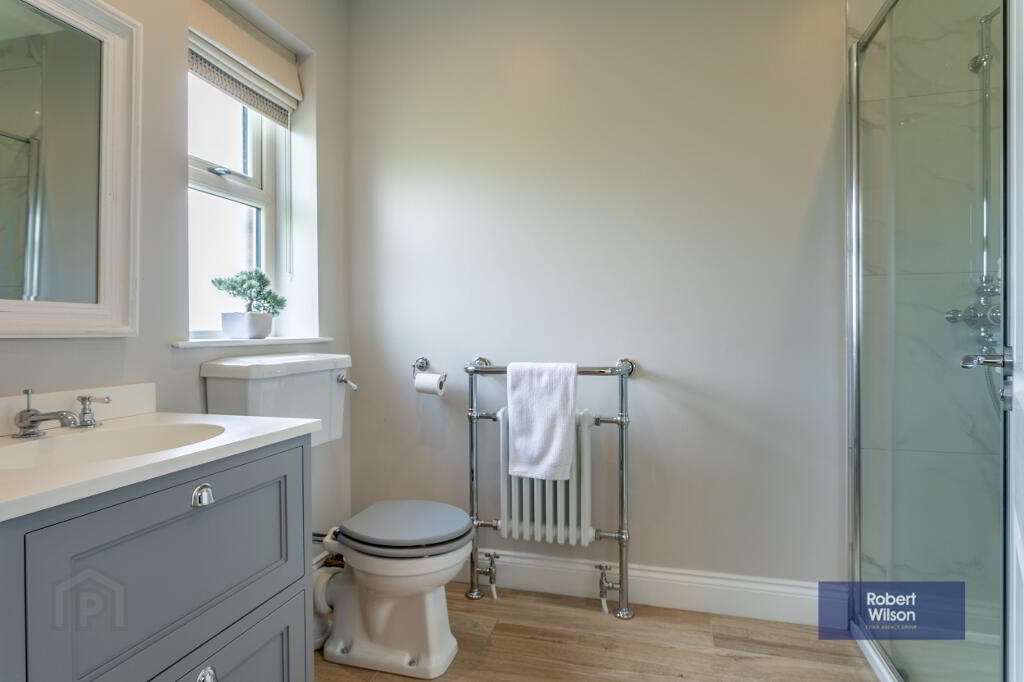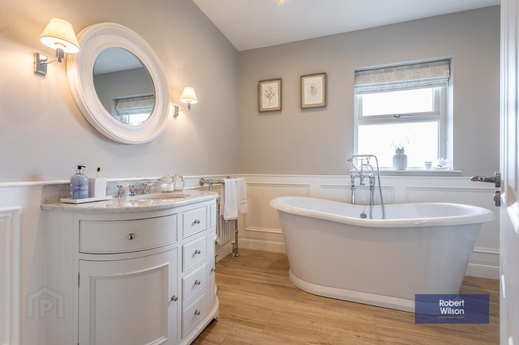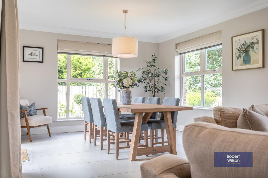 This property offers refined countryside living within walking distance of Hillsborough’s charming village centre, with its shops, cafés, and historic appeal