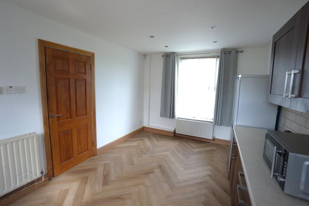Inside, the home opens with an entrance hall leading to a lounge with wooden flooring and useful storage. The spacious kitchen/dining room features a range of units, ample worktop space and room for appliances, with direct access to the rear garden. A shower room with walk-in shower completes the ground floor.