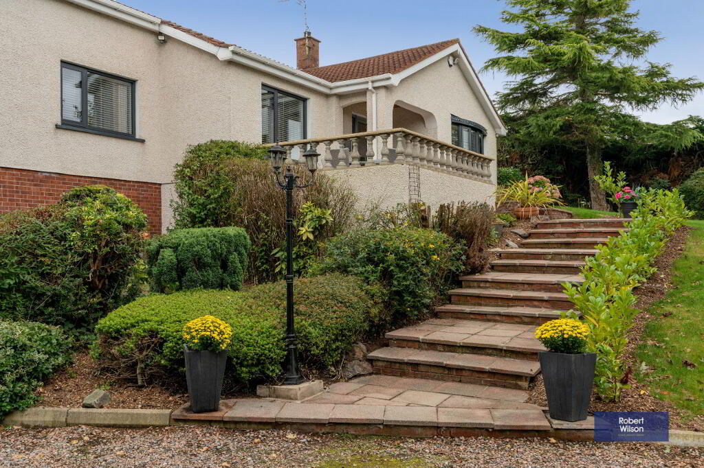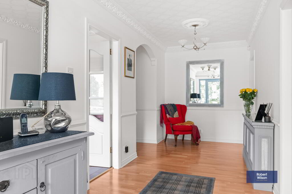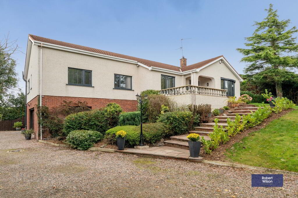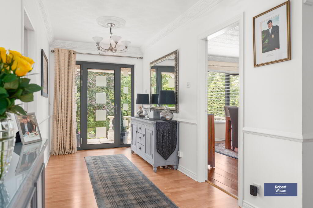 Nestled in a highly sought-after location, 3 Valley Lane is a truly outstanding four-bedroom detached house that combines elegant design, generous proportions, and beautifully landscaped gardens. From the moment you arrive, this home impresses — grand entrance pillars open onto a large sweeping stoned driveway, framed by a mature front garden with lawn, plants, shrubs, and trees. Inside, all main accommodation is arranged on one convenient level, offering a superb balance of space and comfort. The versatile layout includes a welcoming lounge, a stylish formal dining room, and a bright, airy sunroom that captures natural light while providing wonderful views over the rear gardens. The master bedroom enjoys the privacy of its own ensuite, while three further well-proportioned bedrooms and a modern family bathroom complete the accommodation. On the lower level, the property boasts a superb entertainment room with a fully fitted bar — the perfect space for hosting family gatherings, social occasions, or simply unwinding in style. This unique feature sets the home apart and adds a real sense of luxury and fun. Externally, the property continues to delight. To the rear, a private garden sanctuary awaits, featuring an extensive patio area for outdoor dining and entertaining, sweeping lawns, and mature landscaping that ensures both beauty and seclusion. A detached garage further enhances the practicality of this impressive home. With its rare combination of single-level living, a lower-level entertainment room complete with fully fitted bar, and beautifully landscaped gardens, 3 Valley Lane is more than just a property — it is a lifestyle opportunity in one of Waringstown’s most desirable settings. Homes of this calibre seldom come to market, making this a truly unmissable offering.