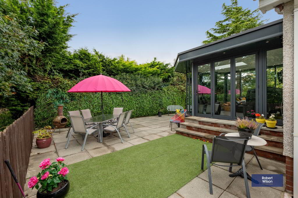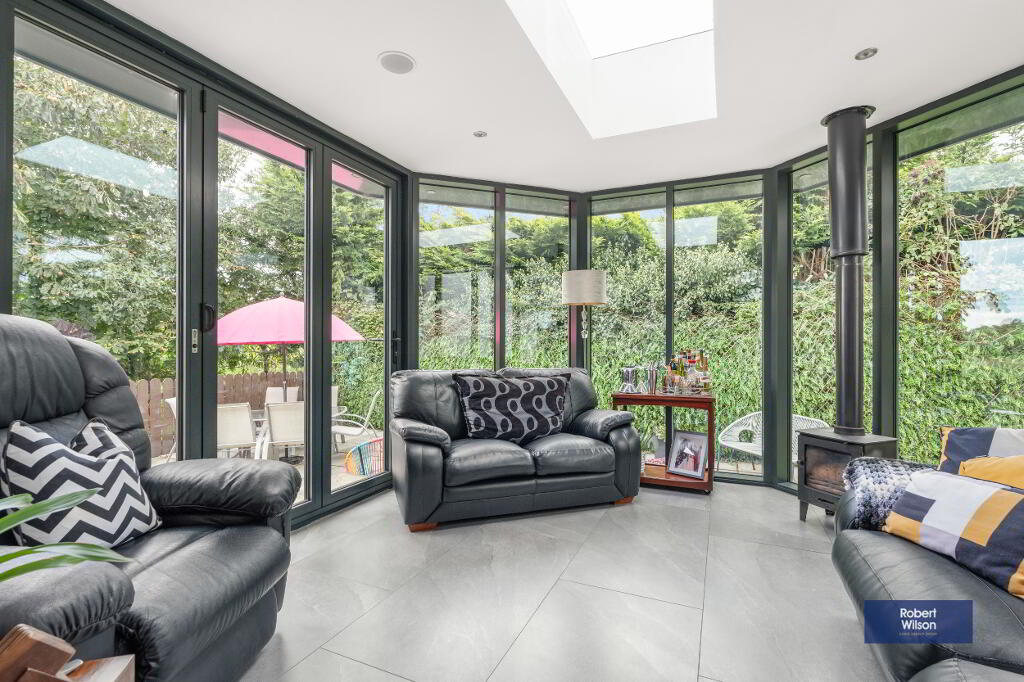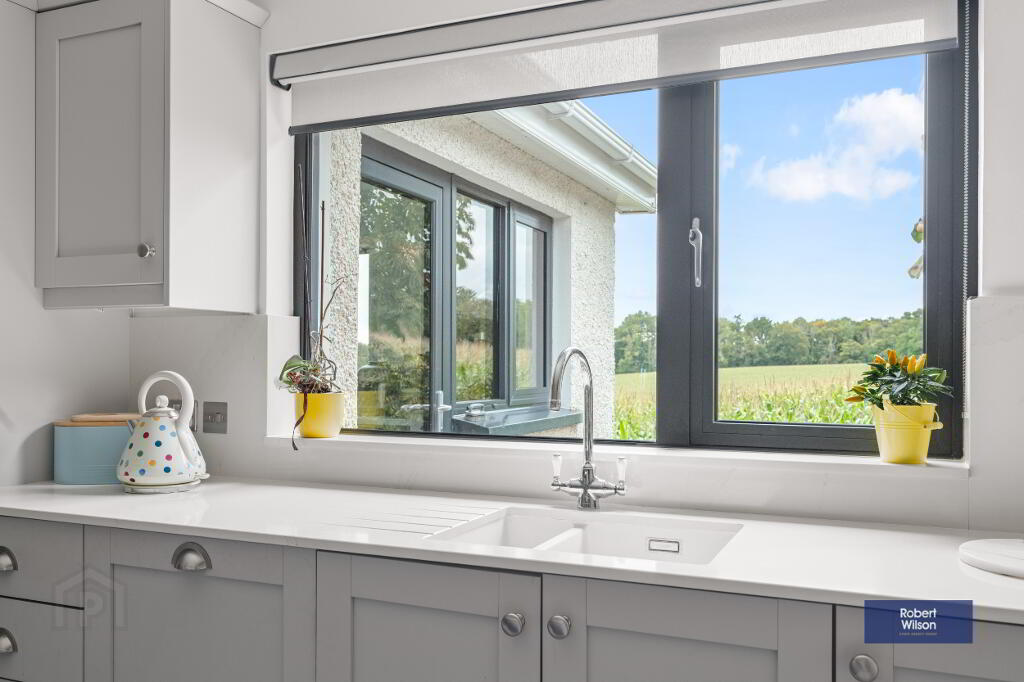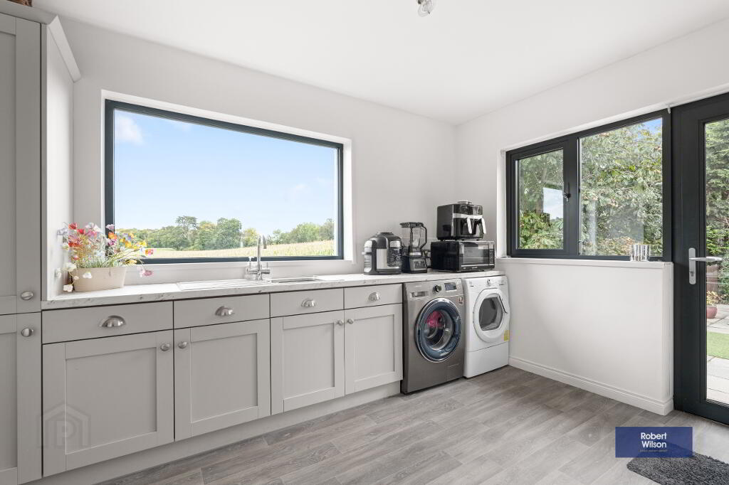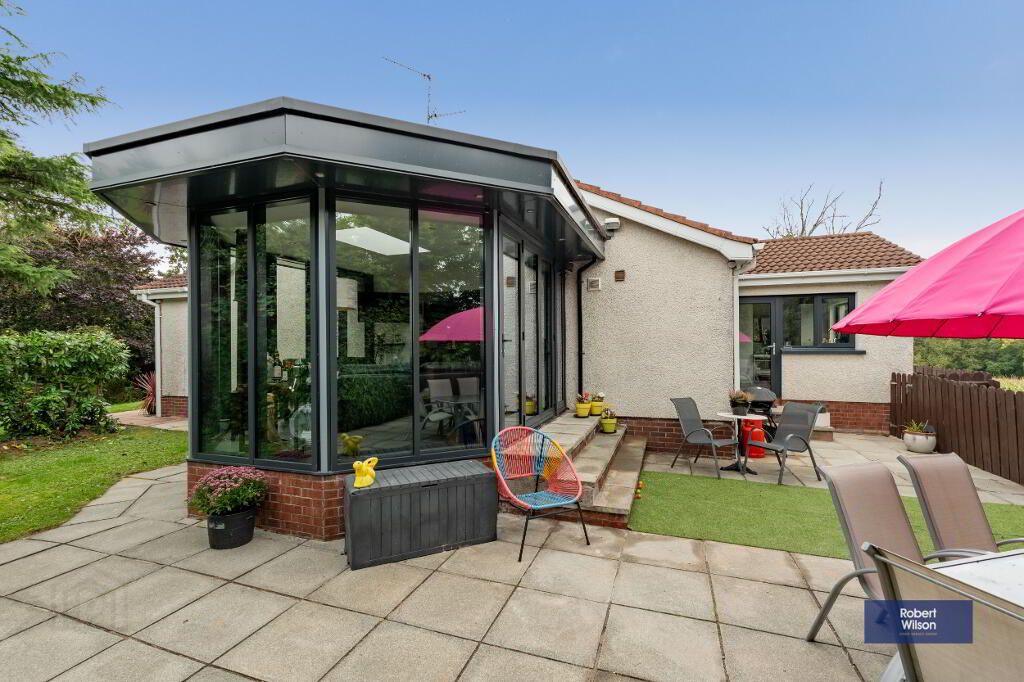 Nestled in a highly sought-after location, 3 Valley Lane is a truly outstanding four-bedroom detached house that combines elegant design, generous proportions, and beautifully landscaped gardens. From the moment you arrive, this home impresses — grand entrance pillars open onto a large sweeping stoned driveway, framed by a mature front garden with lawn, plants, shrubs, and trees. Inside, all main accommodation is arranged on one convenient level, offering a superb balance of space and comfort. The versatile layout includes a welcoming lounge, a stylish formal dining room, and a bright, airy sunroom that captures natural light while providing wonderful views over the rear gardens. The master bedroom enjoys the privacy of its own ensuite, while three further well-proportioned bedrooms and a modern family bathroom complete the accommodation. On the lower level, the property boasts a superb entertainment room with a fully fitted bar — the perfect space for hosting family gatherings, social occasions, or simply unwinding in style. This unique feature sets the home apart and adds a real sense of luxury and fun. Externally, the property continues to delight. To the rear, a private garden sanctuary awaits, featuring an extensive patio area for outdoor dining and entertaining, sweeping lawns, and mature landscaping that ensures both beauty and seclusion. A detached garage further enhances the practicality of this impressive home. With its rare combination of single-level living, a lower-level entertainment room complete with fully fitted bar, and beautifully landscaped gardens, 3 Valley Lane is more than just a property — it is a lifestyle opportunity in one of Waringstown’s most desirable settings. Homes of this calibre seldom come to market, making this a truly unmissable offering.