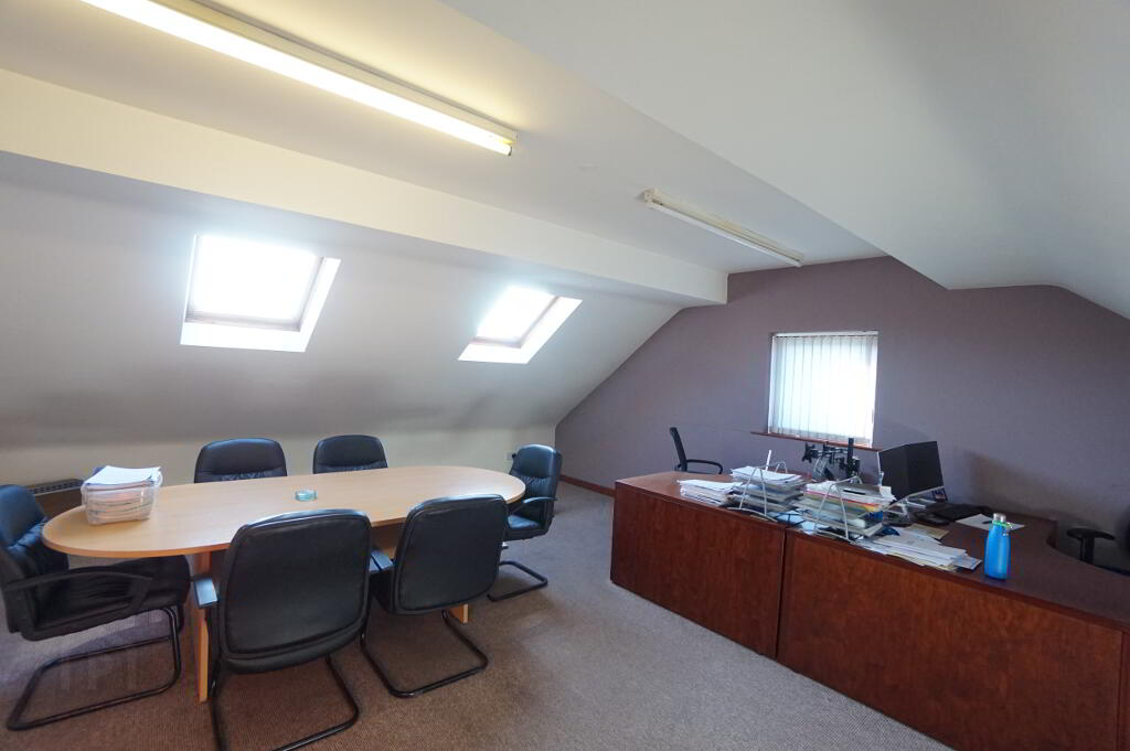 Located in a prime, easy-to-find spot on Moira’s Main Street, this property offers a professional and versatile workspace spread across two floors. The first floor features a spacious main office area and WC. Upstairs, there’s a bright boardroom or additional office space, with a convenient kitchenette located on the landing.