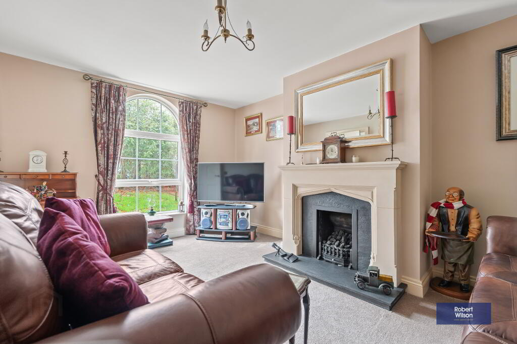 The property welcomes you with a bright entrance hall featuring tiled flooring and under-stair storage, leading to a well-proportioned lounge with a feature fireplace and a cosy, homely feel.