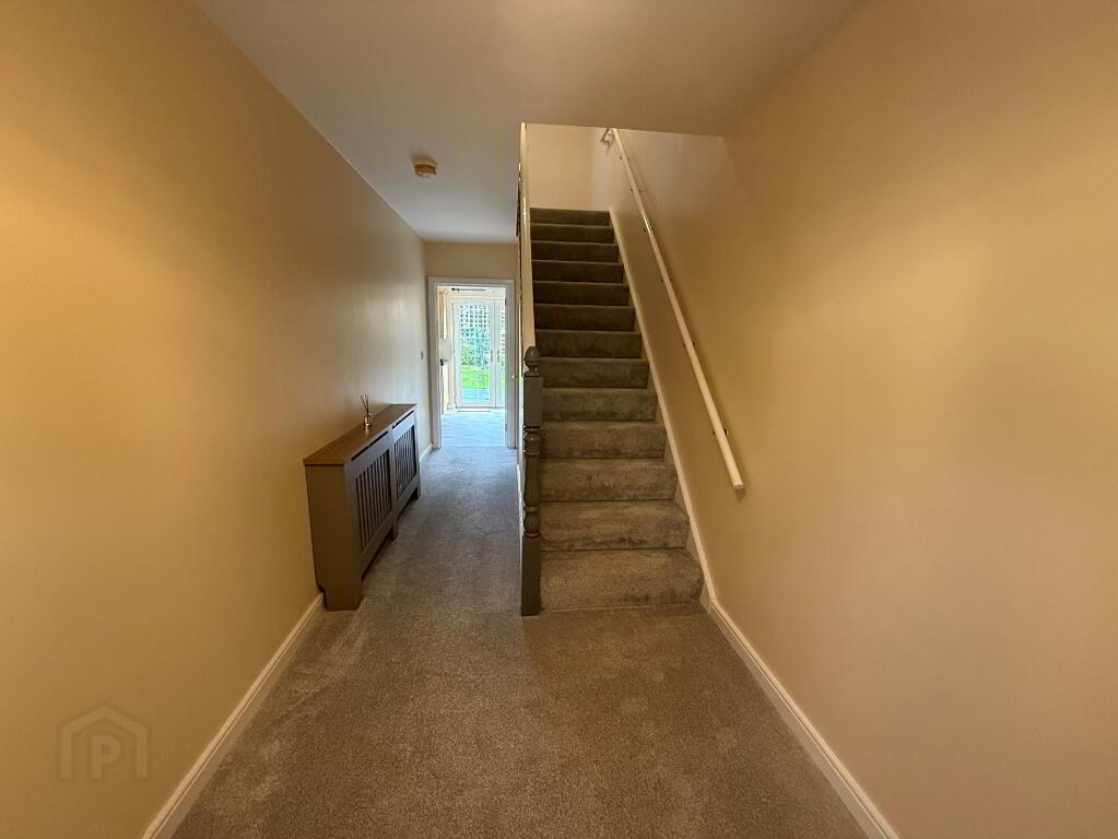 uPVC front door with canopy over, newly fitted carpet, single panel radiator, stairs to first floor.