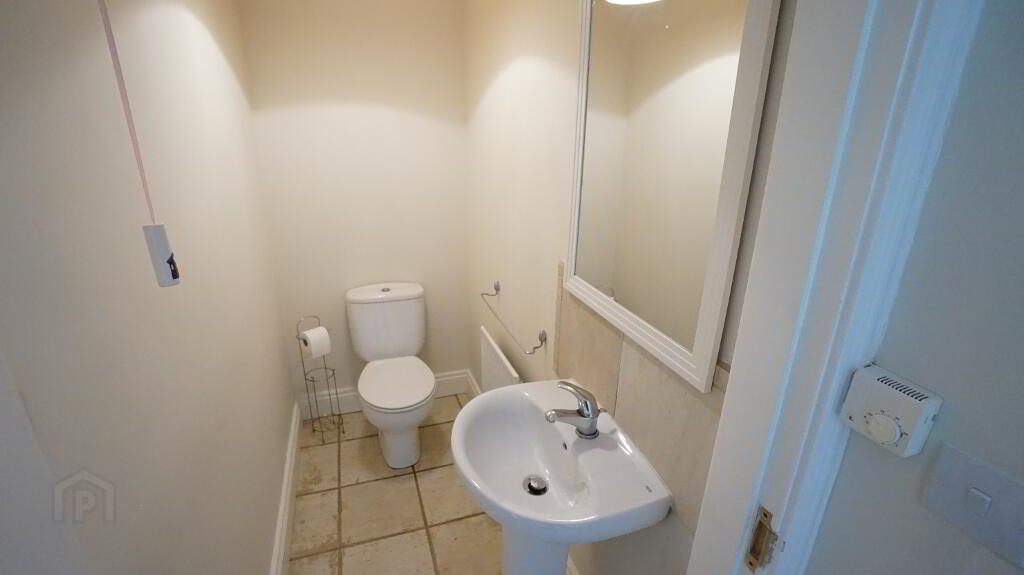 Low flush wc, pedestal wash hand basin, tiled floor, extractor fan.