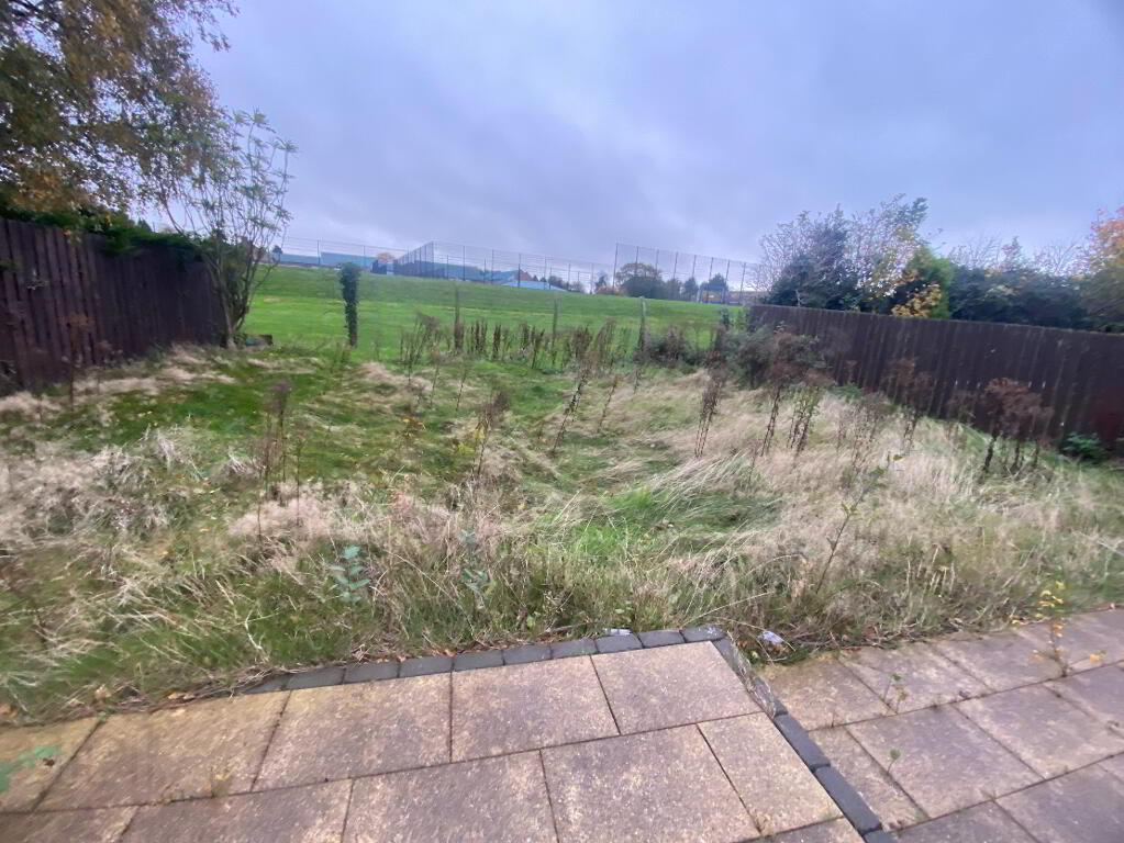 Rear garden with paved patio area, fully enclosed with timber fencing.
