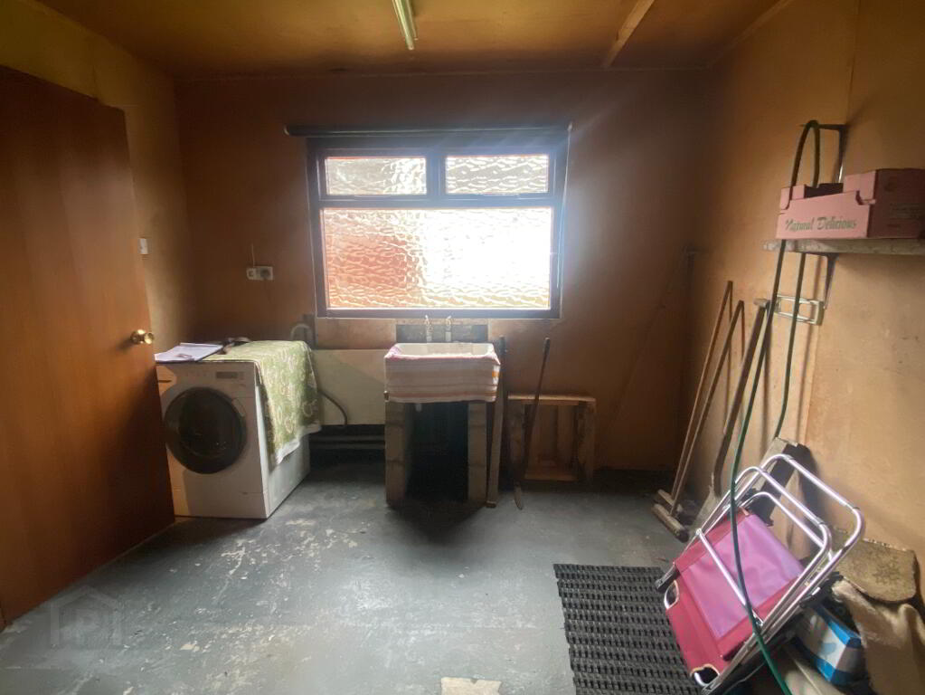 To the rear, the property enjoys a generous garden laid in lawn with a large brick-paviour patio—perfect for relaxing or entertaining. Outside, a brick-paviour driveway leads to the detached garage, with roller shutter door. The garage also features a separate integrated utility room with light, power and plumbing for a washing machine. Neatly housed uPVC oil tank to the rear.