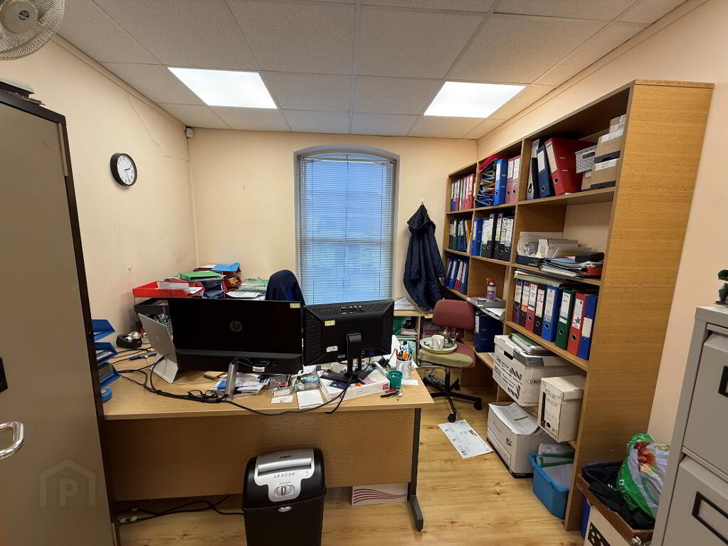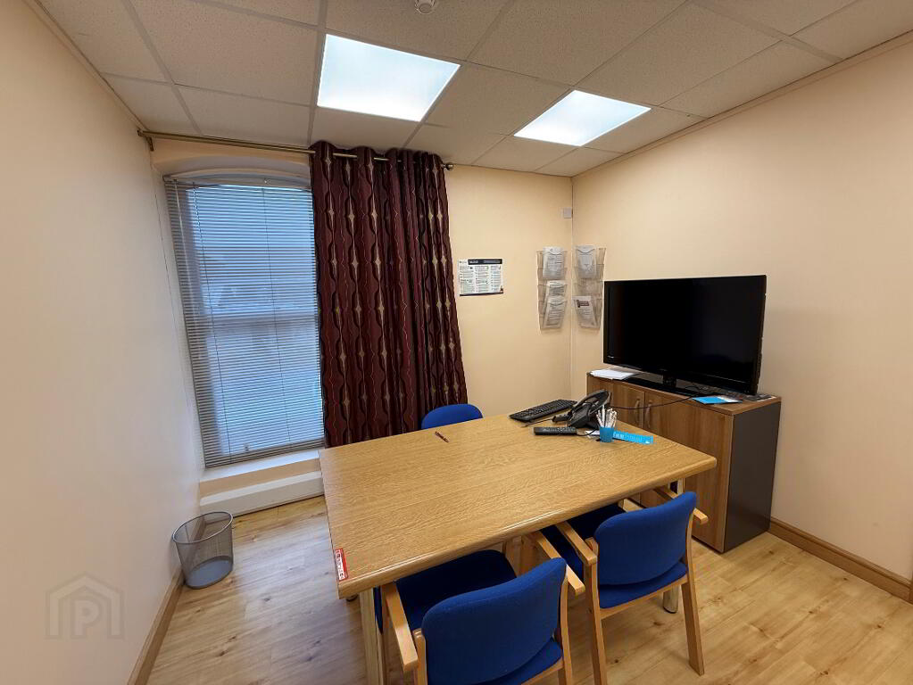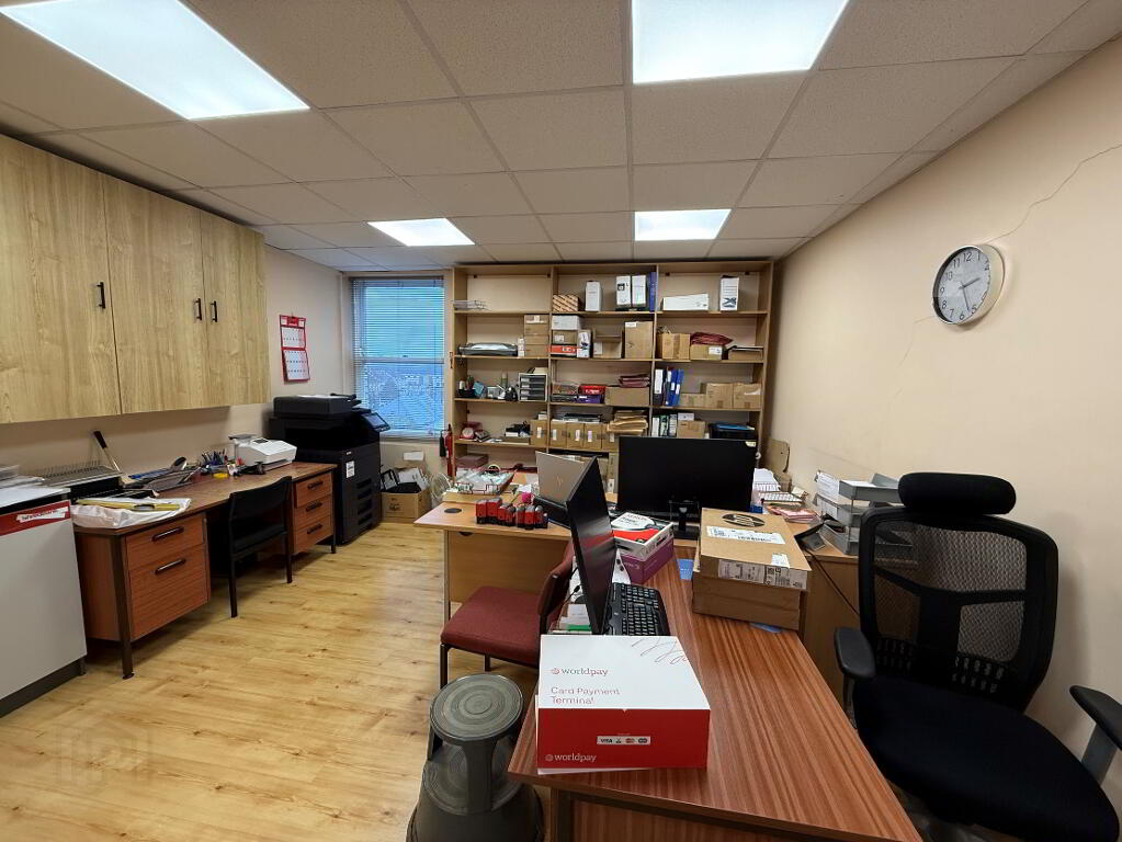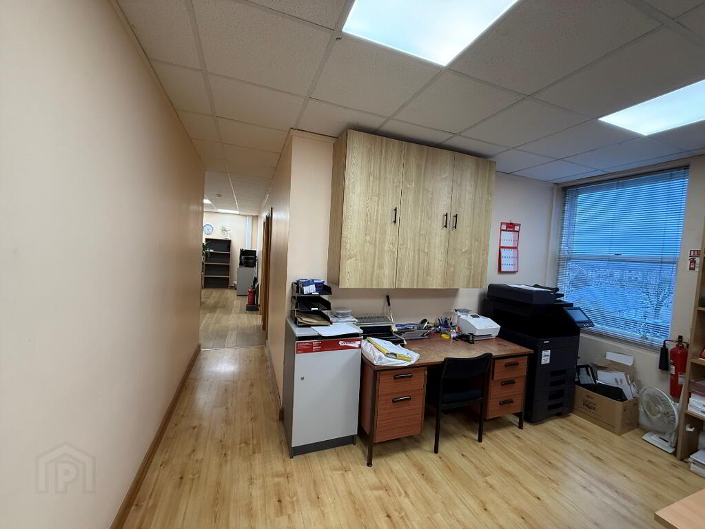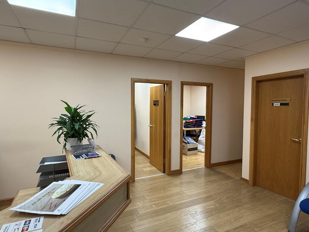 This modern commercial unit is arranged over two floors and offers well-presented, versatile office accommodation suitable for a range of professional uses. The accommodation includes a welcoming reception area that creates a strong first impression, a dedicated boardroom ideal for meetings and presentations, and four offices in total. One of the offices is open plan, providing a flexible workspace suited to collaborative working, while the remaining offices offer private, well-proportioned rooms for focused or managerial use. The upper floor provides two W/C facilities and a fitted kitchen area, delivering convenient staff amenities and supporting comfortable day-to-day operations. Finished to a contemporary standard throughout, the space is bright, functional, and thoughtfully arranged to meet modern business requirements. The property would suit occupiers seeking a professional, ready-to-use workspace in a practical and efficient layout.