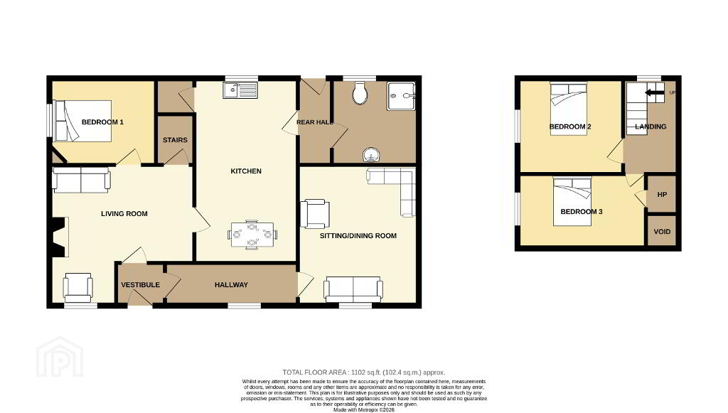 To the first floor, there are two well-proportioned bedrooms. The property benefits from oil-fired central heating, with the boiler only a few years old, along with uPVC double-glazed windows and doors throughout.