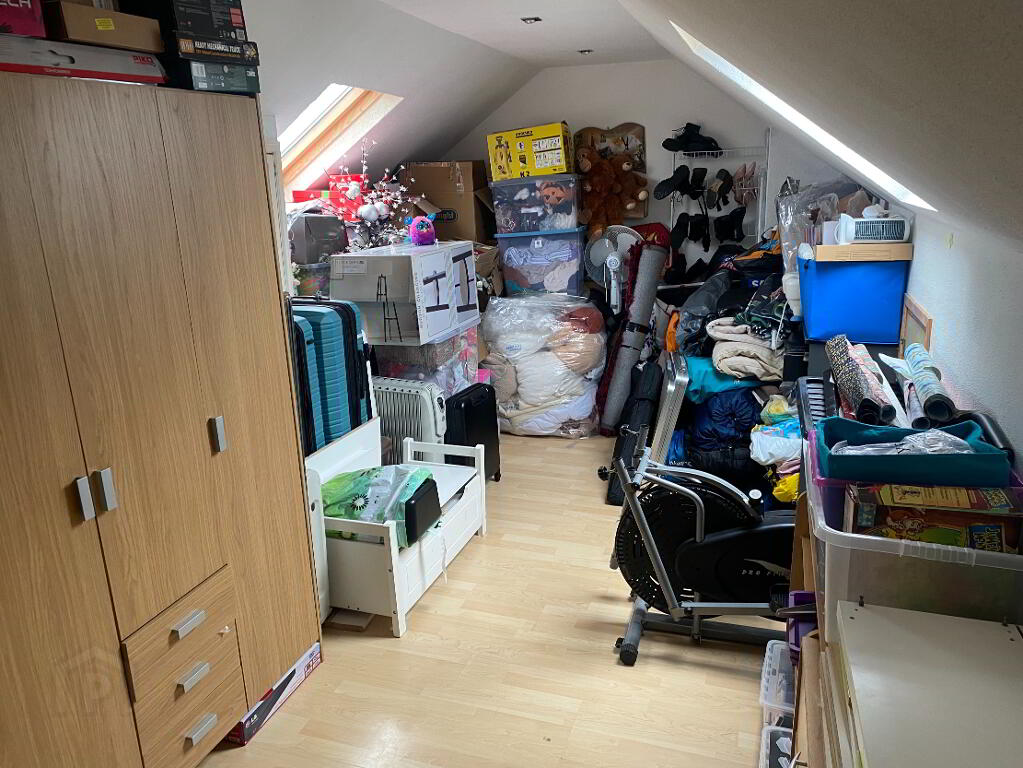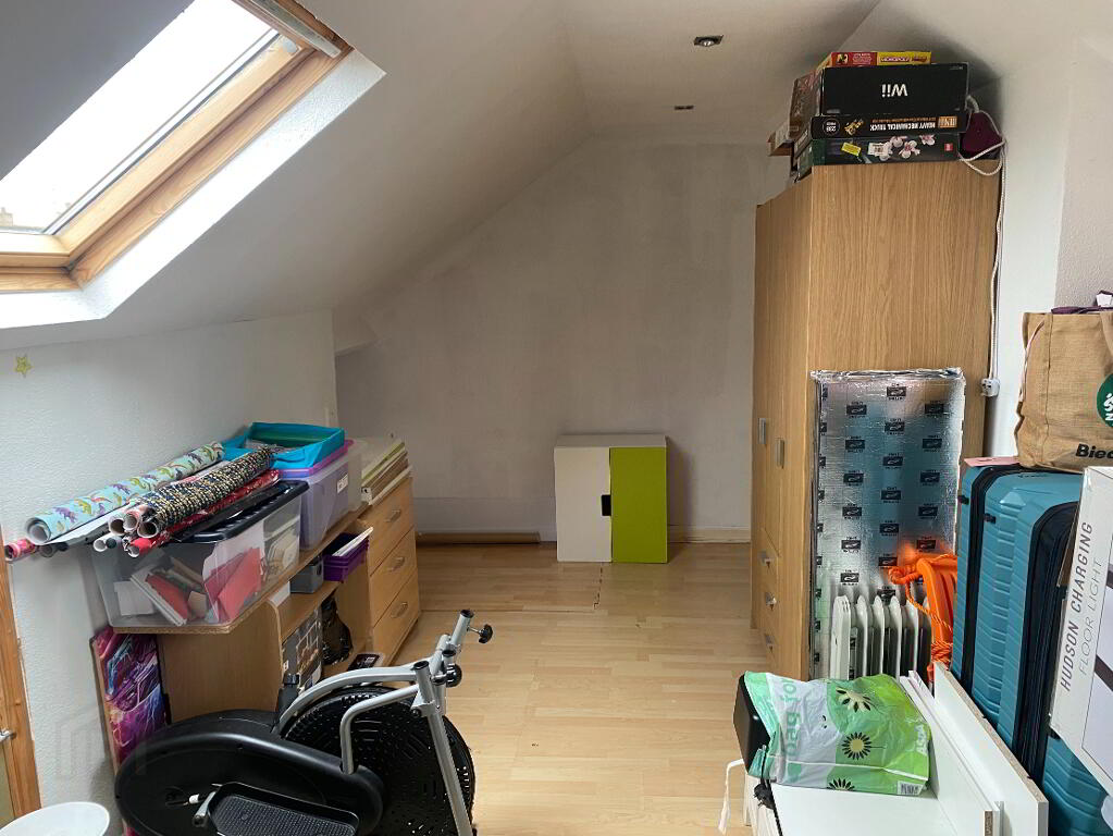 5.78m x 2.39m (19' 0" x 7' 10") Wood laminate flooring, 2 Velux windows, recessed lights, under eaves storage.