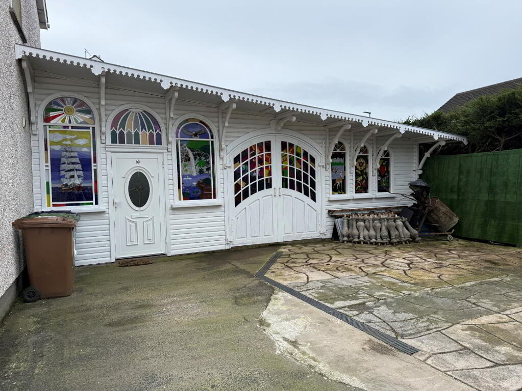 3.5m x 3.5m (11' 6" x 11' 6") Tiled floor, upvc door with centre glazed panel, upvc side door to garden area.