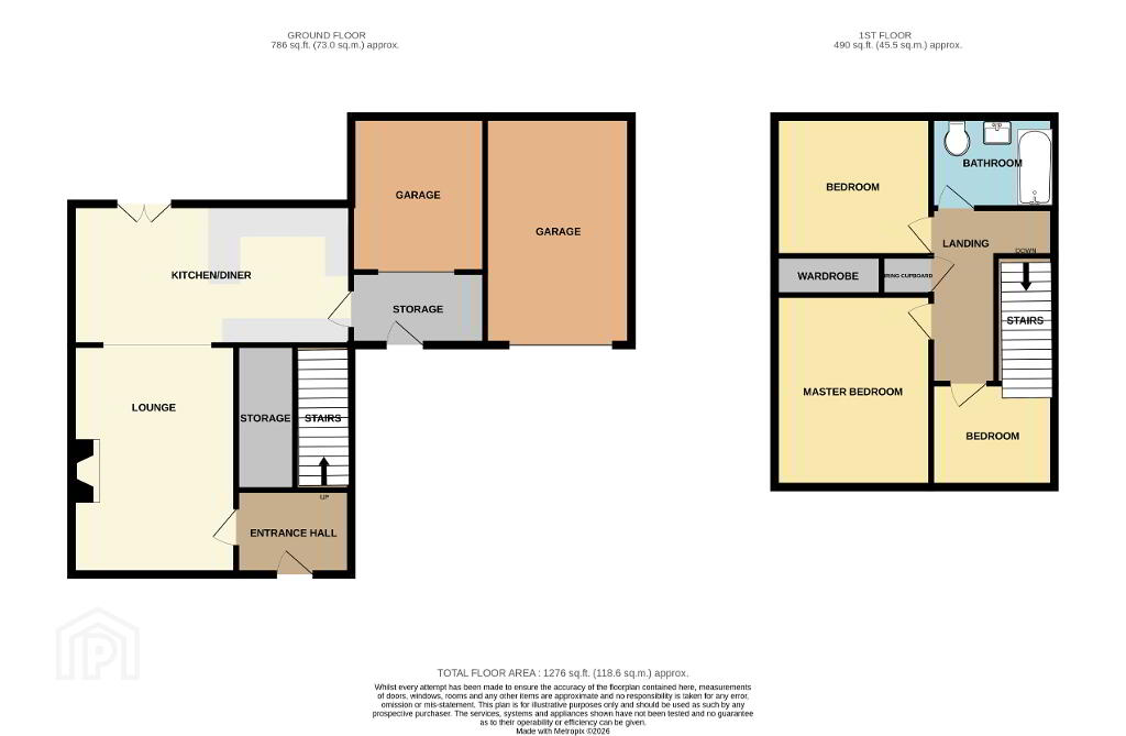 7.8m x 7.2m (25' 7" x 23' 7") Under floor heating, laminate flooring, built-in storage cupboard, chrome heated towel rail.