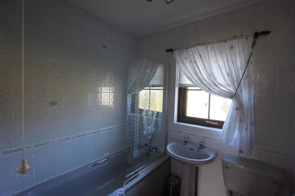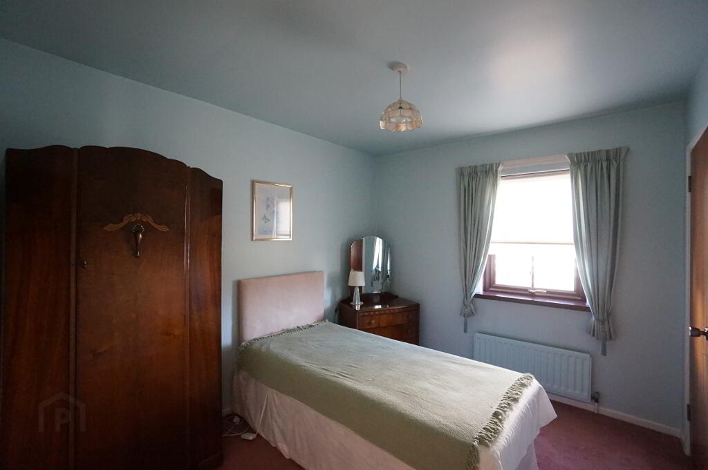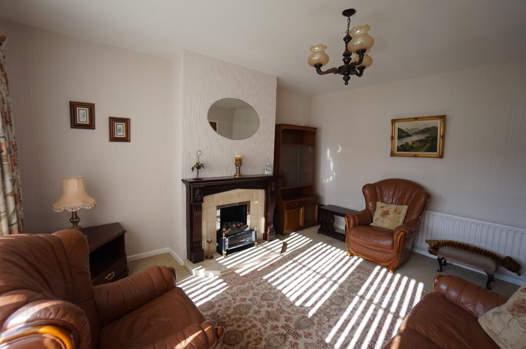 The property boasts three well-proportioned bedrooms, two of which benefit from built-in storage. The bathroom is fitted with a suite comprising low flush WC, pedestal wash hand basin and panel bath, complemented by fully tiled walls and tiled flooring.
