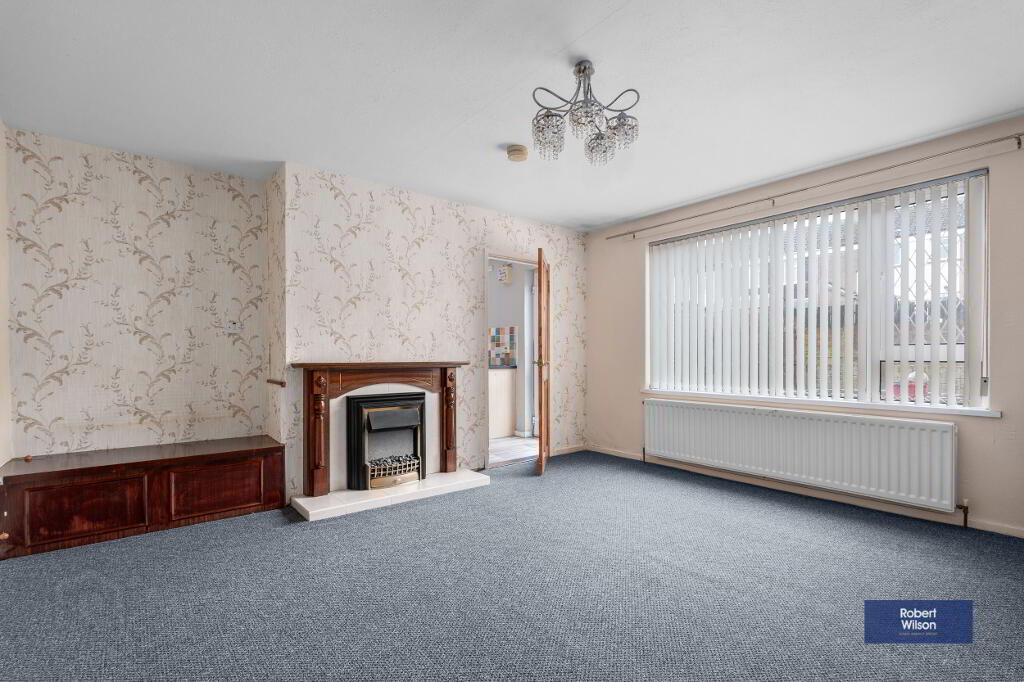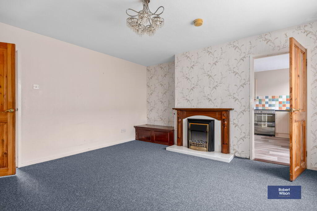 The accommodation comprises a welcoming entrance hall leading to a bright living room with feature fireplace, creating a cosy focal point. The kitchen provides ample dining space and is further enhanced by a generous storage area and a separate storeroom, which offers excellent potential for conversion to a utility space.