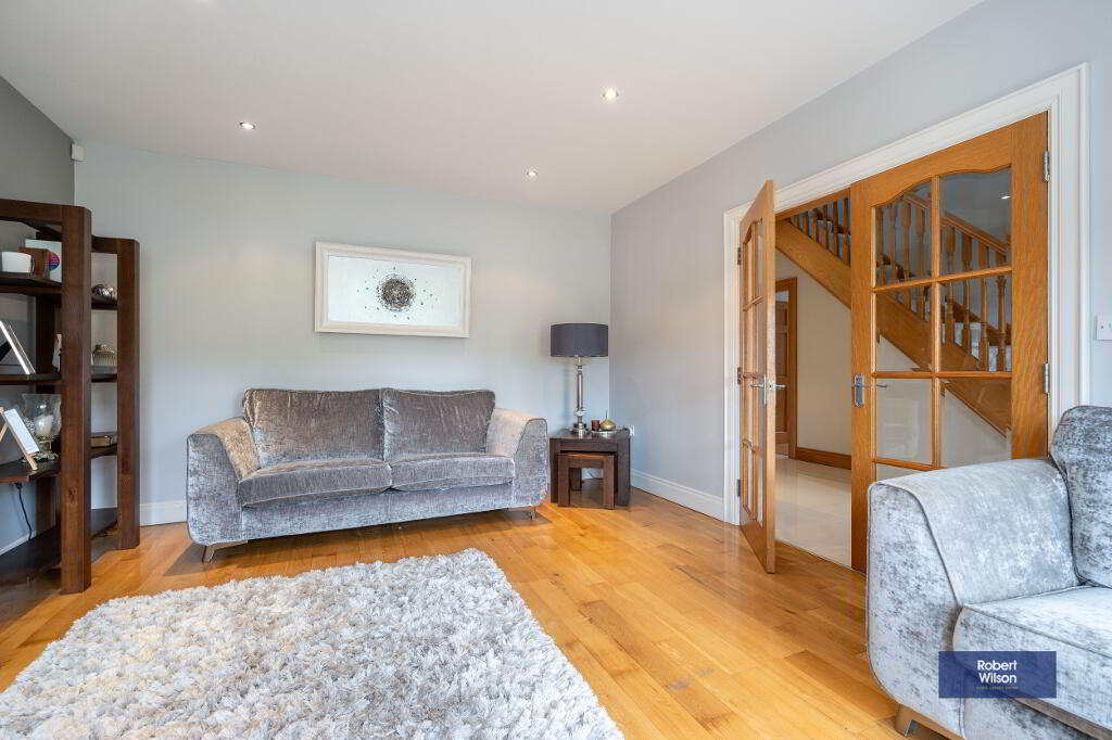 Additional highlights include solid oak flooring, a large utility room, integral double garage with electric doors, and a landscaped rear garden – all set within a peaceful, family-friendly cul-de-sac.