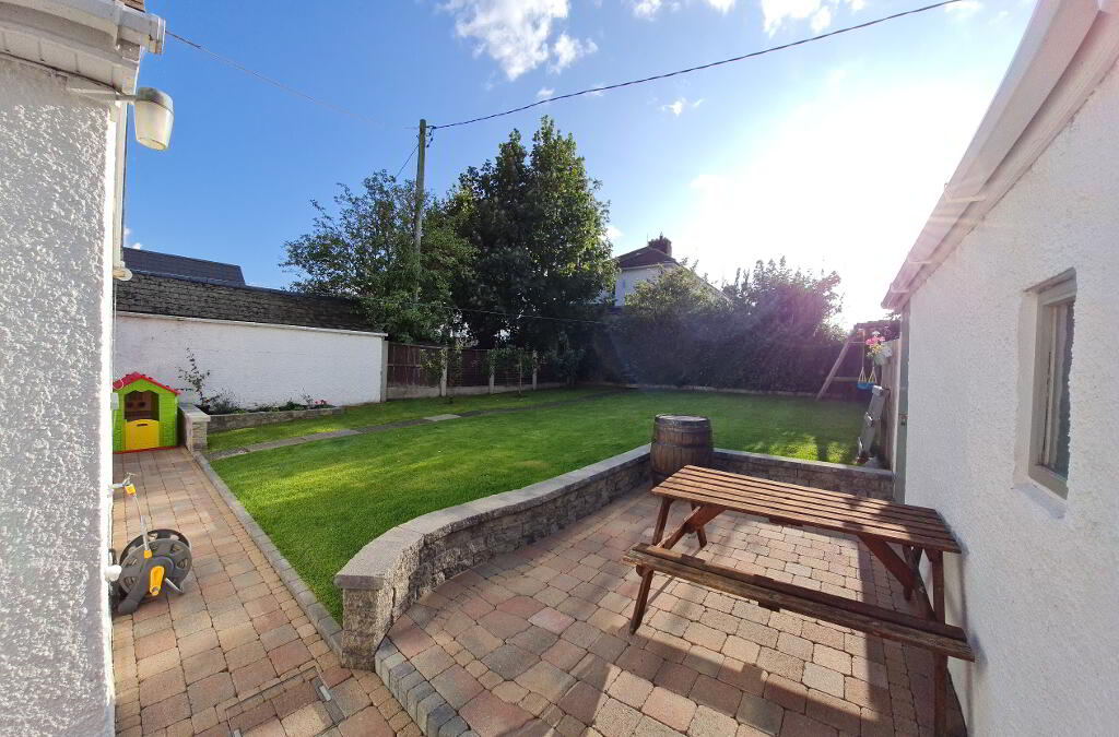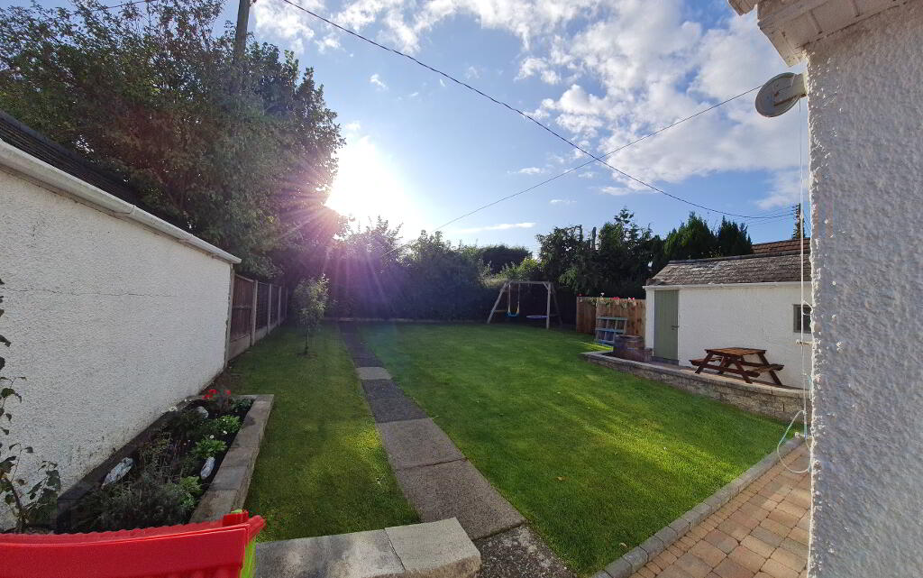 Fully enclosed rear garden with south-west aspect, decorative 'Tobermore' paving brick patio.