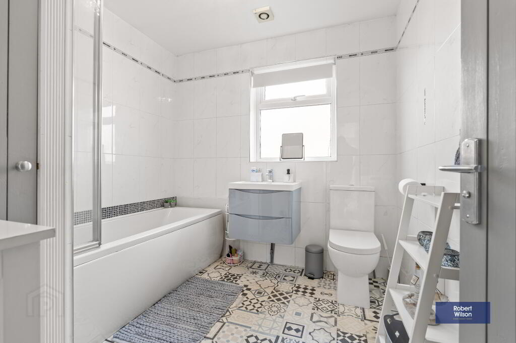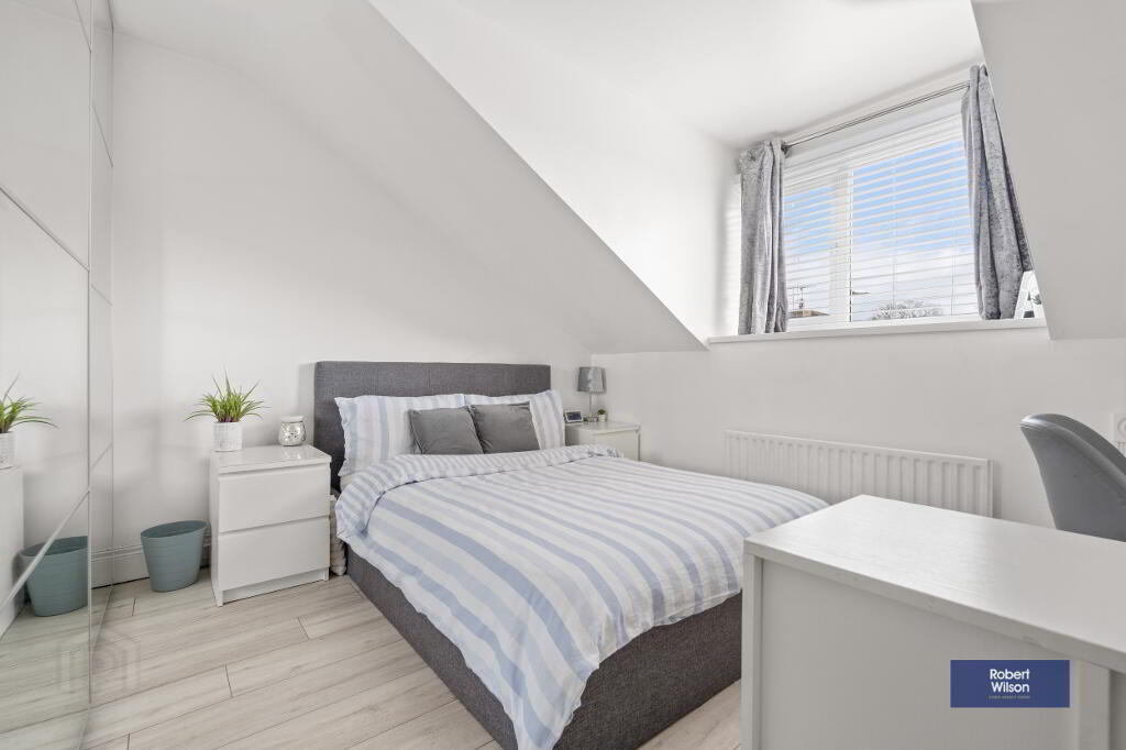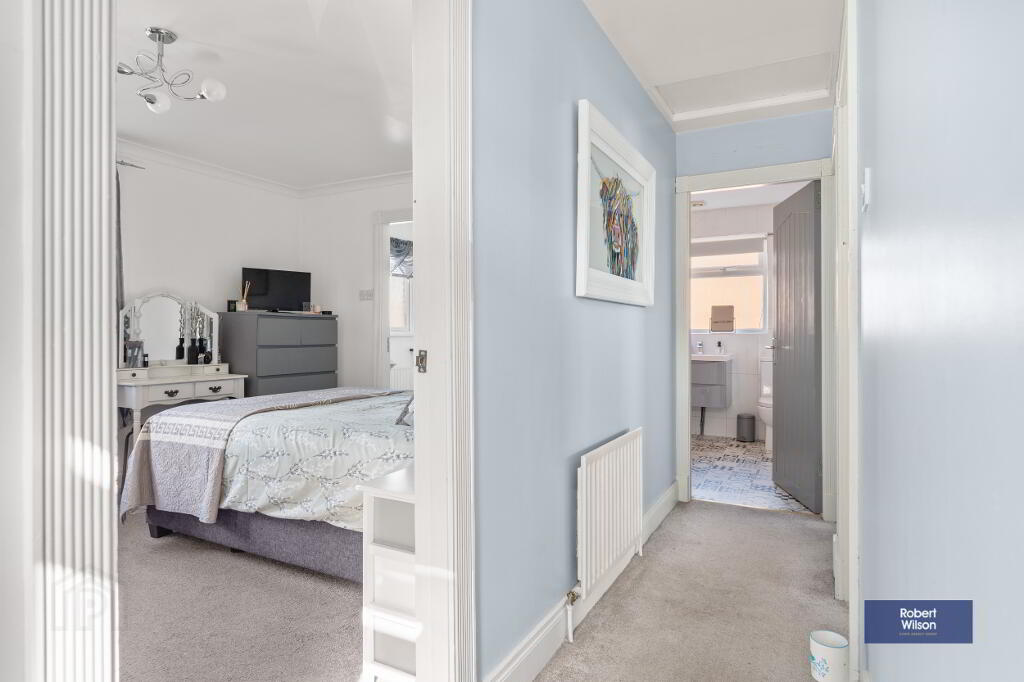 Upstairs, the property offers three well-proportioned bedrooms, including a spacious master with built-in slide robes and a modern en-suite shower room. A stylish family bathroom features a contemporary white suite and quality finishes throughout.
