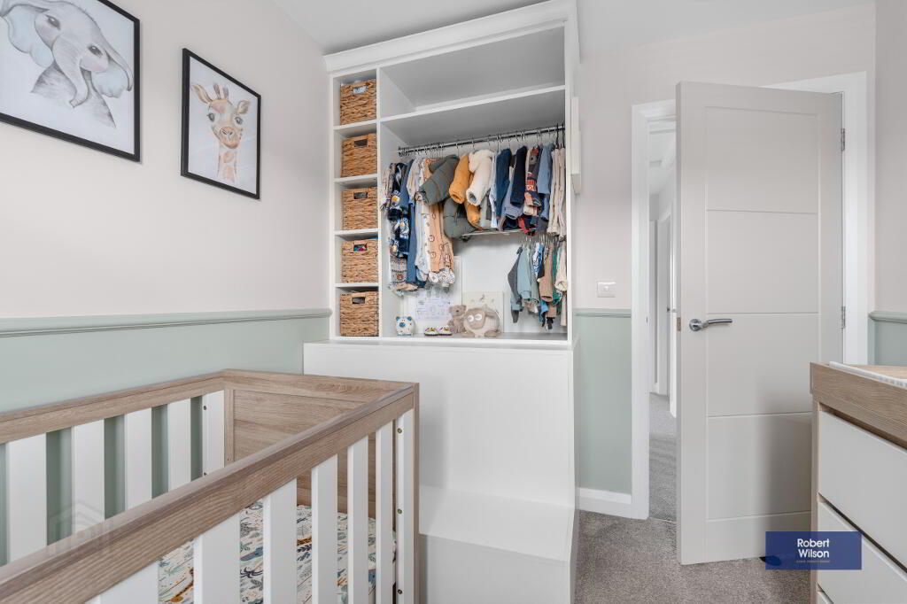 8' 10" x 8' 0" (2.69m x 2.44m) Built in wardrobe feature with hanging space and storage. Dado rail.
