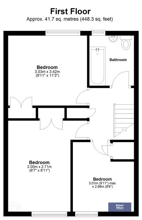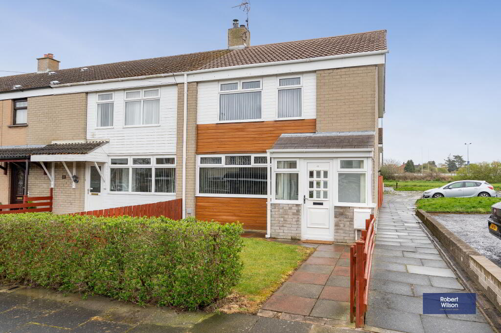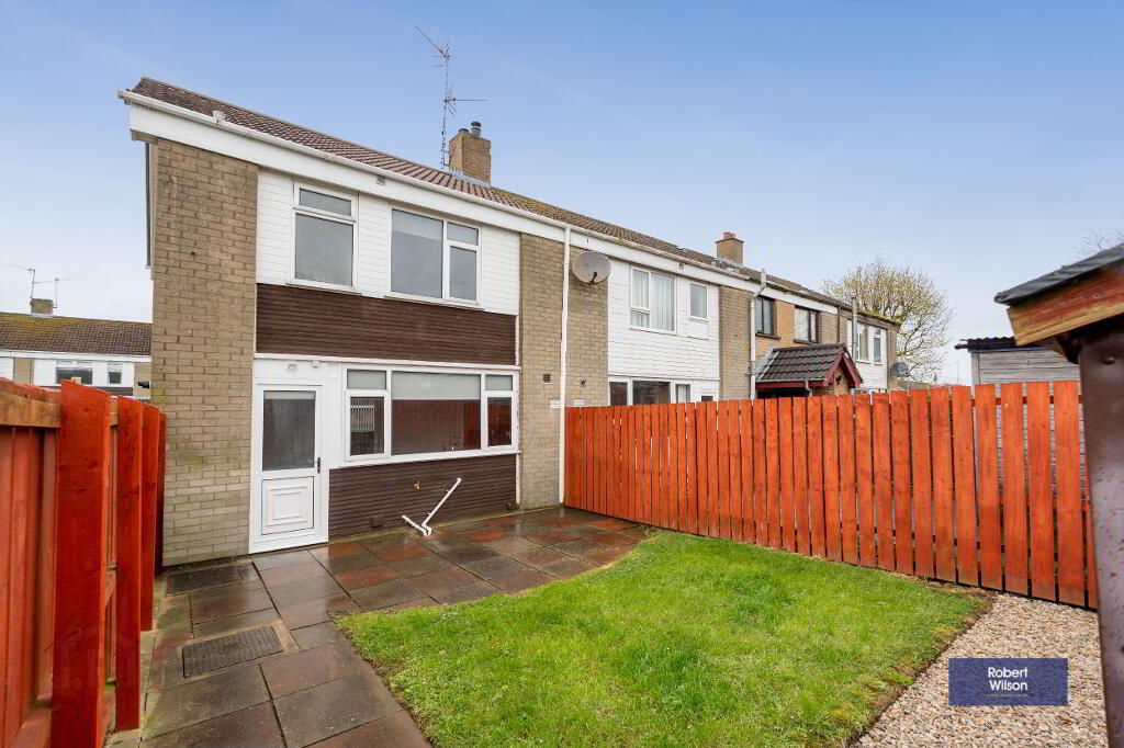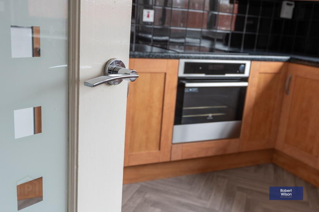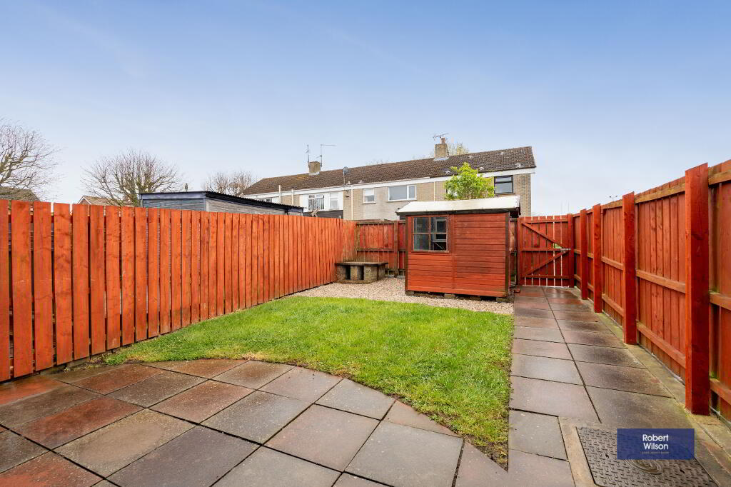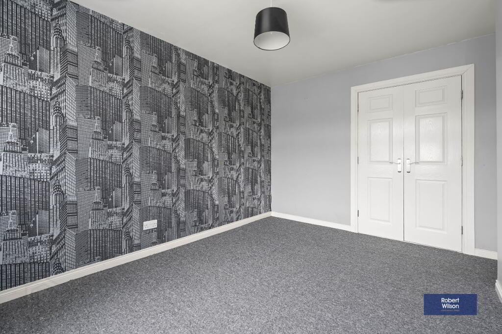 Upstairs, the property boasts three well-proportioned bedrooms, all benefiting from built-in wardrobes. The modern family bathroom has been tastefully refurbished and includes a panel bath with thermostatic shower over, wall-mounted wash hand basin, and low flush WC.
