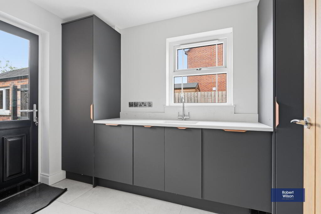 A well-appointed utility room provides additional storage and practicality, with direct access to the garden.