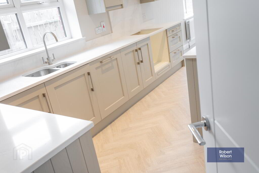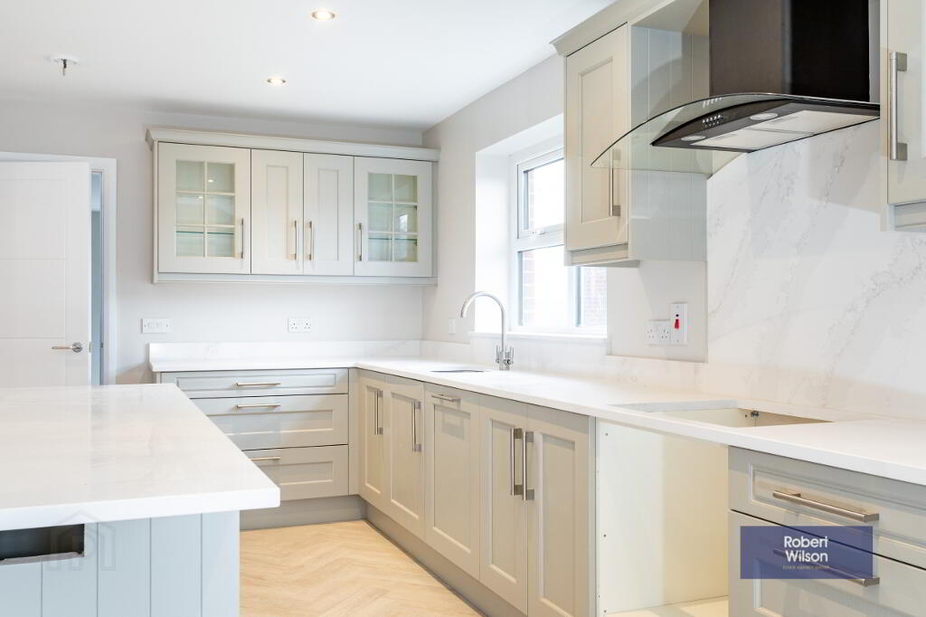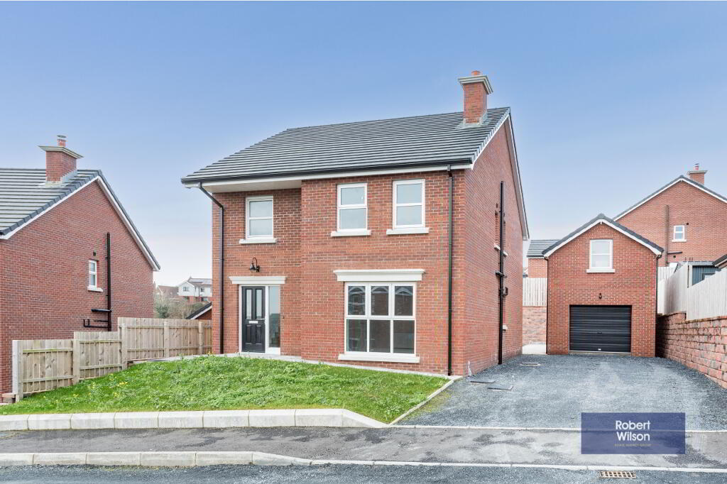 Modern and spacious new build 4 bedroom home available, accommodation comprising large open plan kitchen / dining area with sunroom and separate lounge, 4 bedrooms (master with ensuite) and detached 2 storey garage.