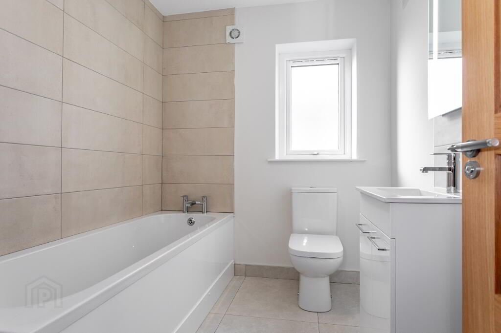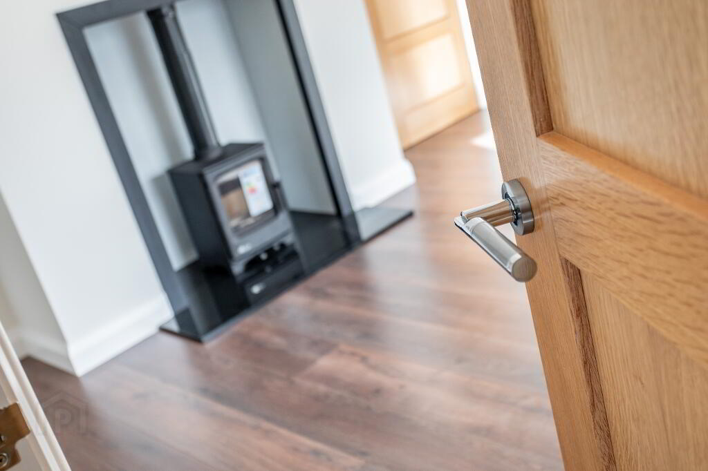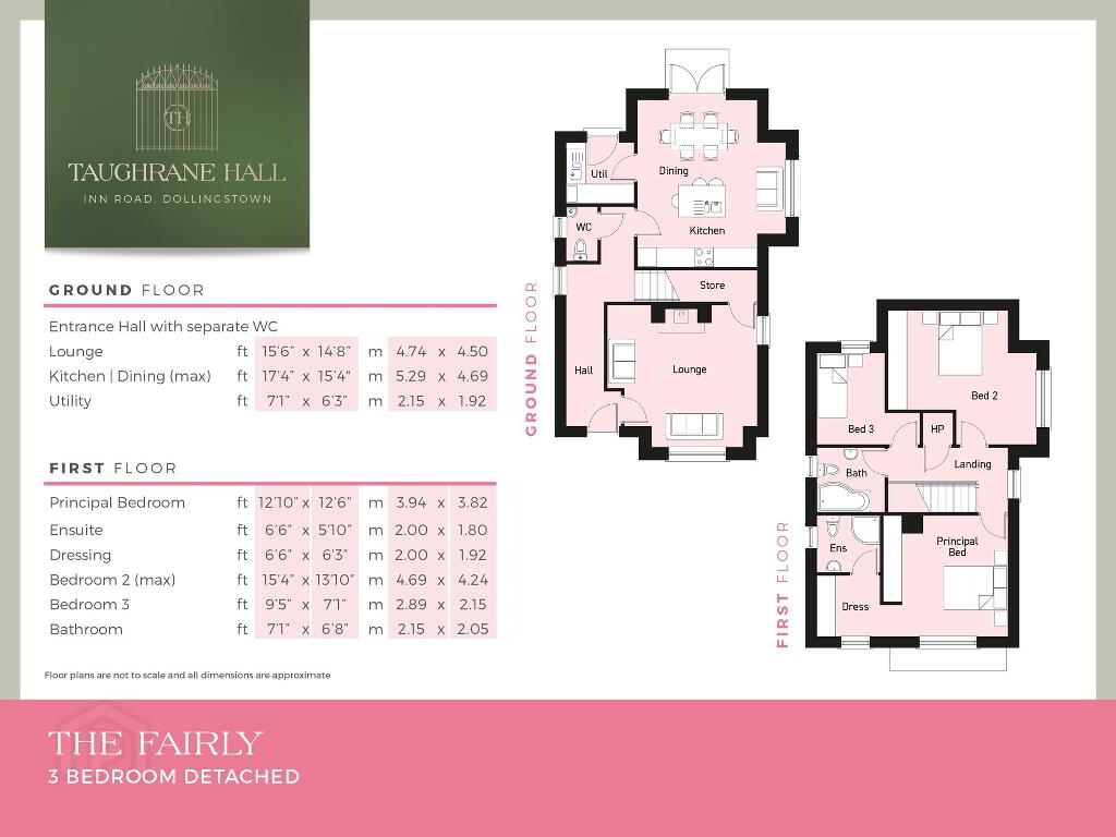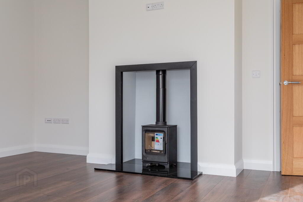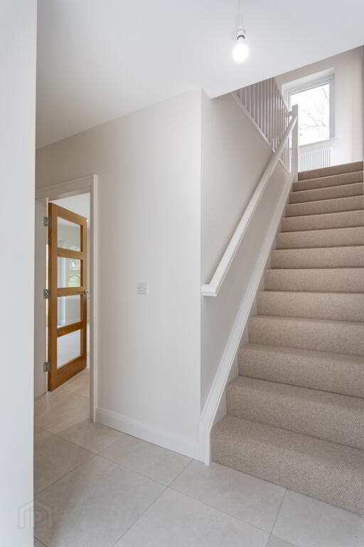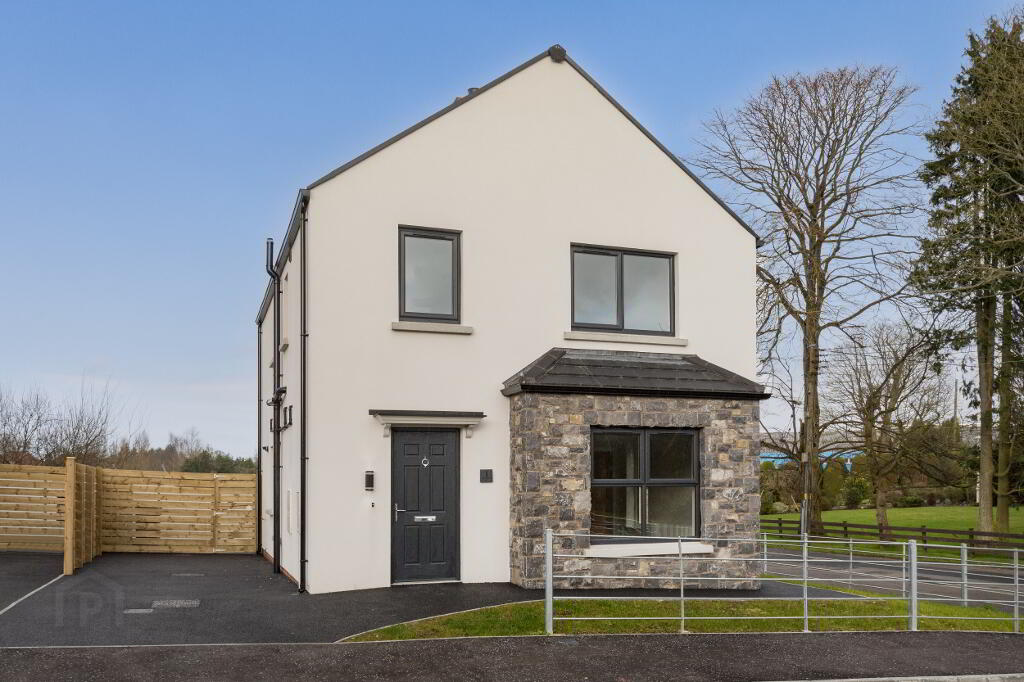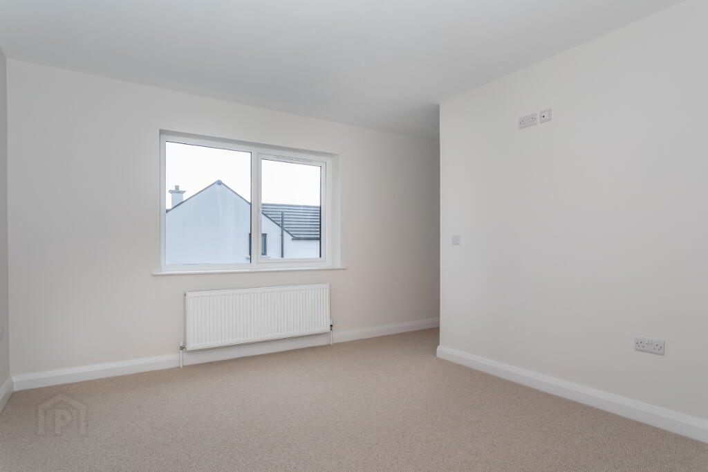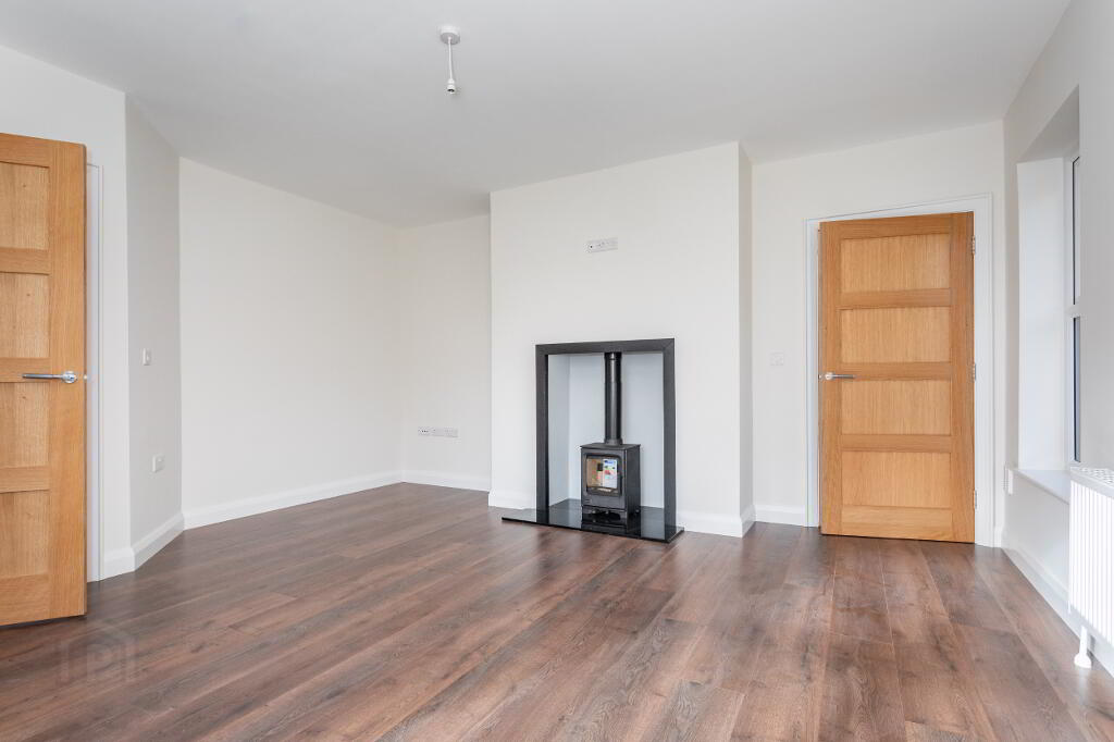 Internal Features: Walls and ceilings painted in emulsion Painted skirting boards, architraves & door frames Painted timber staircase and balustrades Wood burning stove to lounge Oak doors as standard Low energy lighting Mains supply smoke and carbon monoxide detectors High efficiency gas boiler External Features: Traditionally built homes with high thermal insulations Double glazed uPVC windows Bitmac driveway Outside light at rear and entrance Gardens graded and seeded as per site layout Timber fencing to rear garden boundaries 10-year structural defect warranty Concrete interlocking roof tiles PVC fascia and continuous aluminium seamless guttering.